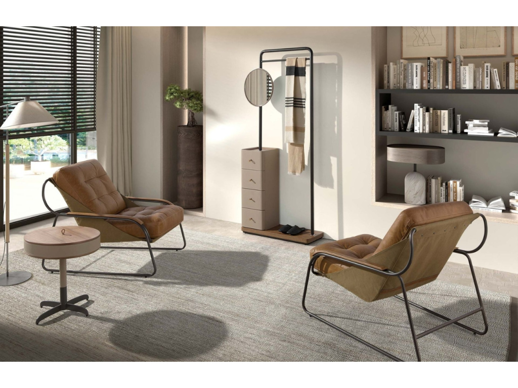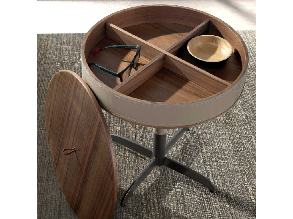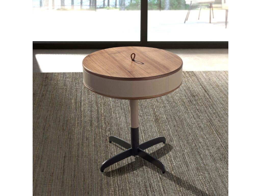 Elegantní, s nádechem luxusu – kulatý odkládací stolek od Angel Cerdá v sobě spojuje vše, co od moderního doplňku čekáte. Kombinace ořechové dýhy, grafitově šedé kovové podnože a béžového čalounění z pravé kůže působí promyšleně a nadčasově. Každý detail má své místo. Skvěle se hodí vedle pohovky, křesla nebo postele – ať už na šálek kávy, oblíbenou knihu nebo jen tak pro radost. Pod jeho deskou navíc najdete ukryté čtyři přihrádky, které můžete využít na nejrůznější drobnosti – třeba karty, ovladače, brýle nebo oblíbené dobroty. Praktický, stylový a s osobitým šarmem, který si snadno získá své místo ve vašem interiéru!