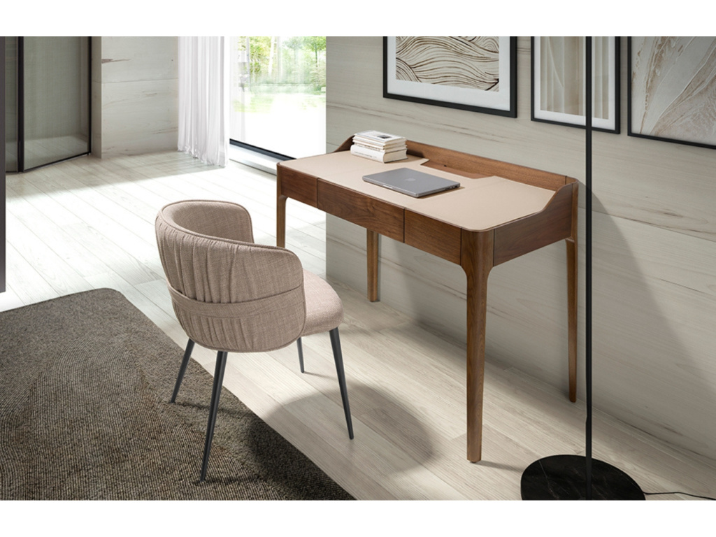 S elegantním pracovním stolem Angel Cerdá obohatíte svůj domov o skutečně stylový kousek nábytku. Ořechový korpus je doplněn o elegantní koženkové čalounění svrchní desky v béžové barvě, které rozhodně upoutá pozornost. Praktická kabelová průchodka se postará o uspořádání kabeláže vašich elektronických řízení a zaručí, že vám nebudou překážet. Díky prostorné zásuvce budete mít navíc všechny potřebné drobnosti a cennosti vždy po ruce. Doplňte váš interiér o tento moderní a sofistikovaný kus nábytku.