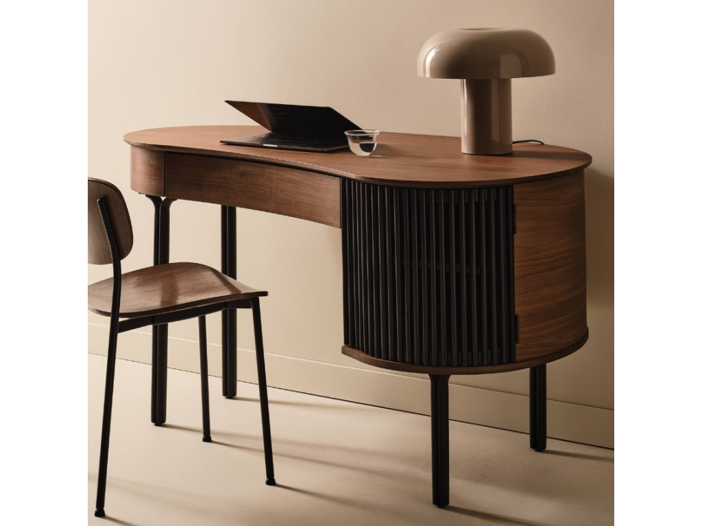 Pracovní stůl Lövstrand je elegantním kouskem, který sází na vyváženou kombinaci ořechového dekoru a jemně laděných kovových prvků, které mu propůjčují moderní nadčasový vzhled. Tento stůl nabízí úložný prostor v podobě jedno zásuvky a dvojice uzavřených polic, s měkce dovírajícími dveřmi pro diskrétní uskladnění věcí, které nemusejí být na očích. MDF s ořechovým dýhováním doplněné o stabilní kovový rám zaručuje, že stůl nejen skvěle vypadá, ale i dlouho poslouží. Díky částečnému předmontování ho zvládnete sestavit během chvíle a doplnit ho navíc můžete také designově sladěnou komodou.