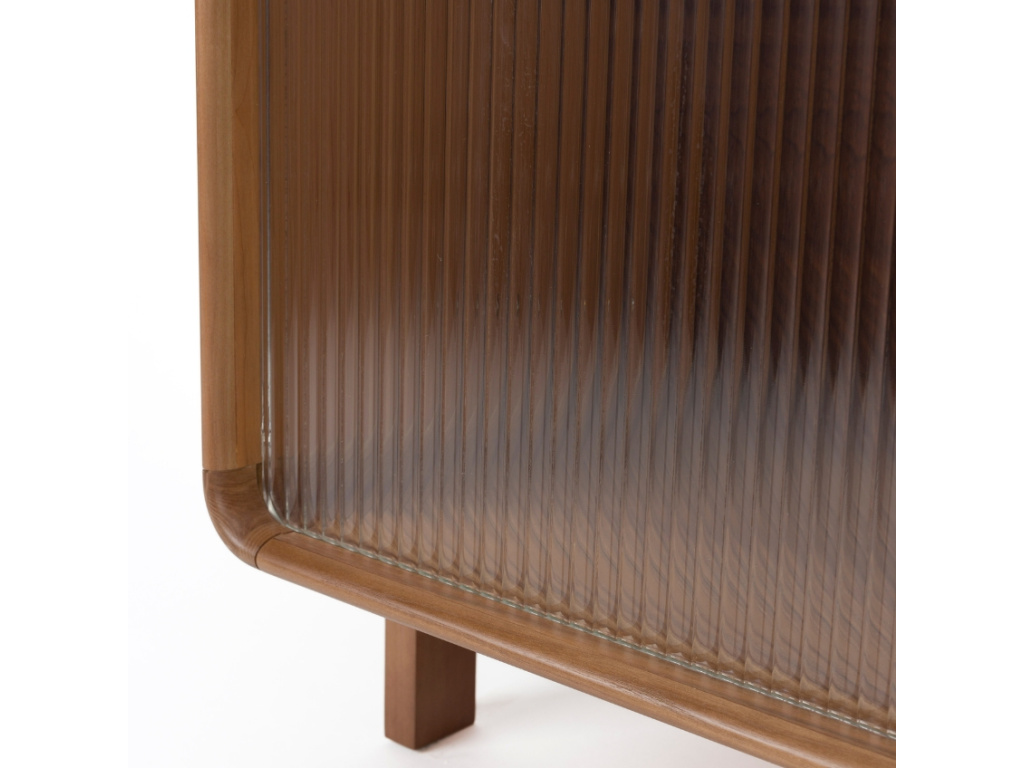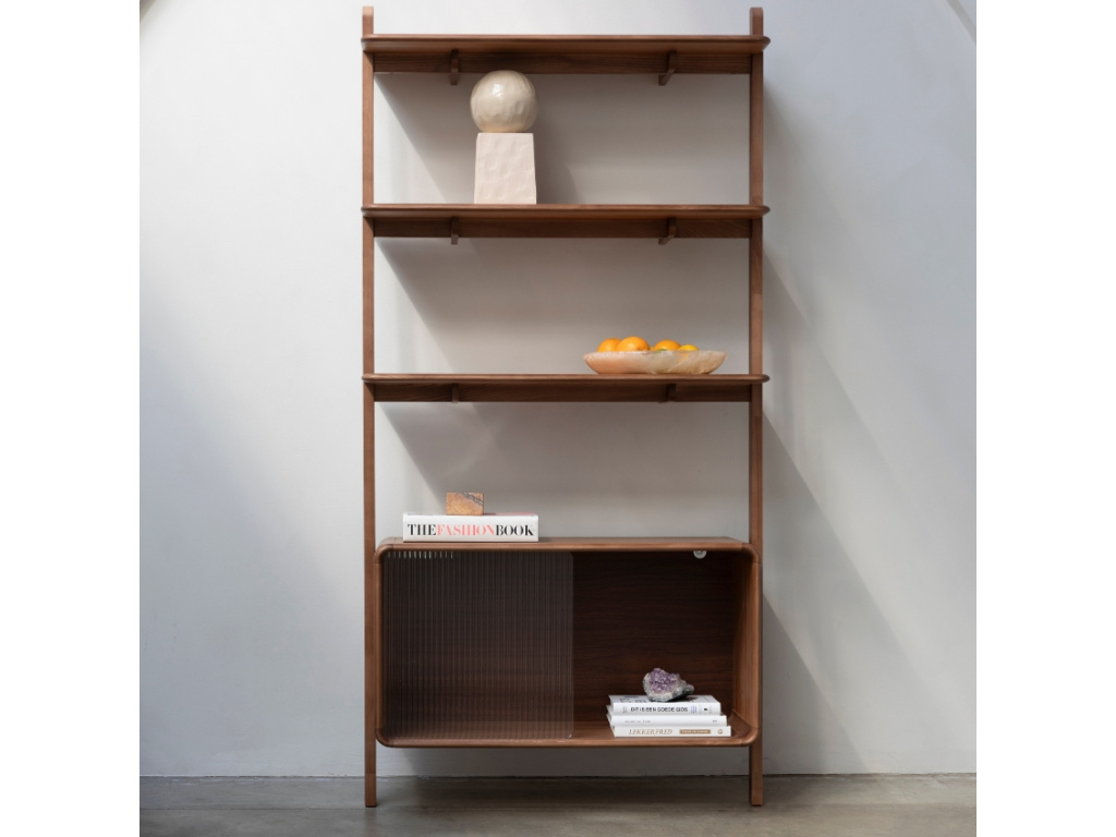 Regál Rise od značky Zuiver je krásným příkladem toho, jak může být nábytek praktický i esteticky výrazný zároveň. Jeho čisté linie, teplý odstín dřeva a vzdušná konstrukce působí lehce a přirozeně, zatímco spodní skleněná část poskytuje prostor pro vše, co nemá být přímo na očích. Díky jemně rýhovanému sklu na posuvných dvířkách získává regál vizuální hloubku i lehký retro nádech. Tento regál Rise se jednoduše stane funkční ozdobou každého interiéru.