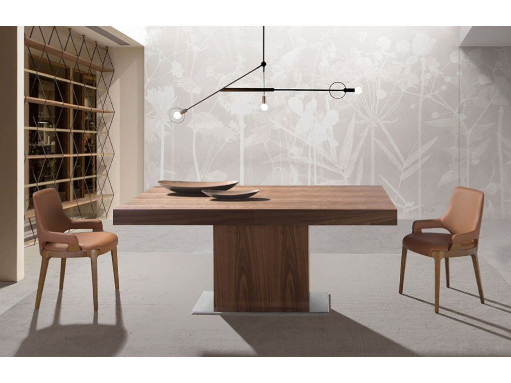 Jídelní stůl Angel Cerdá působí svou masivní podnoží a neobvykle silnou dekou monumentálním dojmem. Minimalistický design čistých linií a kvalitní zpracování ořechové dýhy budou dominovat každé moderní jídelně. Centrální výsuvný mechanismus umožňuje stůl rozšířit až na 240 cm – díky tomu budete moci usadit i větší počet hostů a pohodlně si tak vychutnat společenské akce.