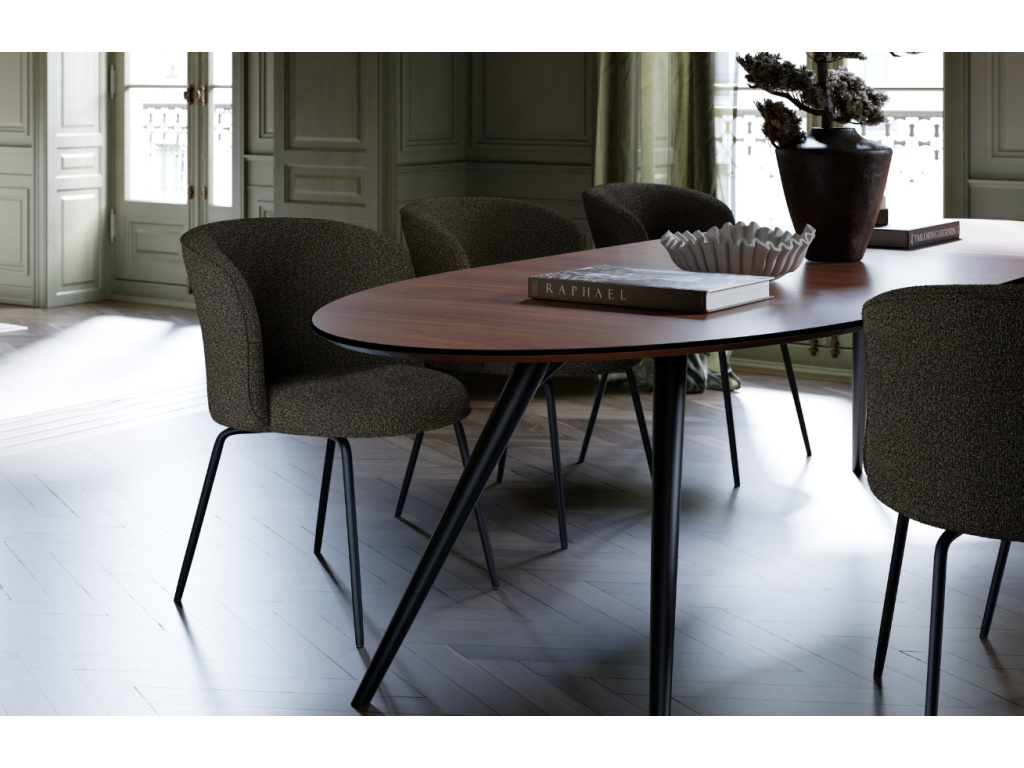 Designový jídelní stůl Eclipse dánské značky DAN-FORM bude chtít ve své jídelně přivítat každý milovník početných návštěv a rodinných sešlostí. Z dvoumetrové desky stolu se pomocí dvou prodlužovacích desek během chvíle stane deska trojmetrová. K rozloženému stolu se vejde 12-14 židlí a to už je opravdu velkolepý prostor. Oválný tvar desky a štíhlá podnož dělají z díla designéra Mortena Georgsena elegantní kousek, který bude slušet domácnostem zařízeným ve skandinávském stylu.