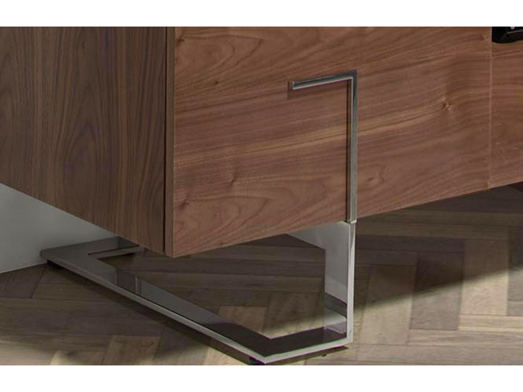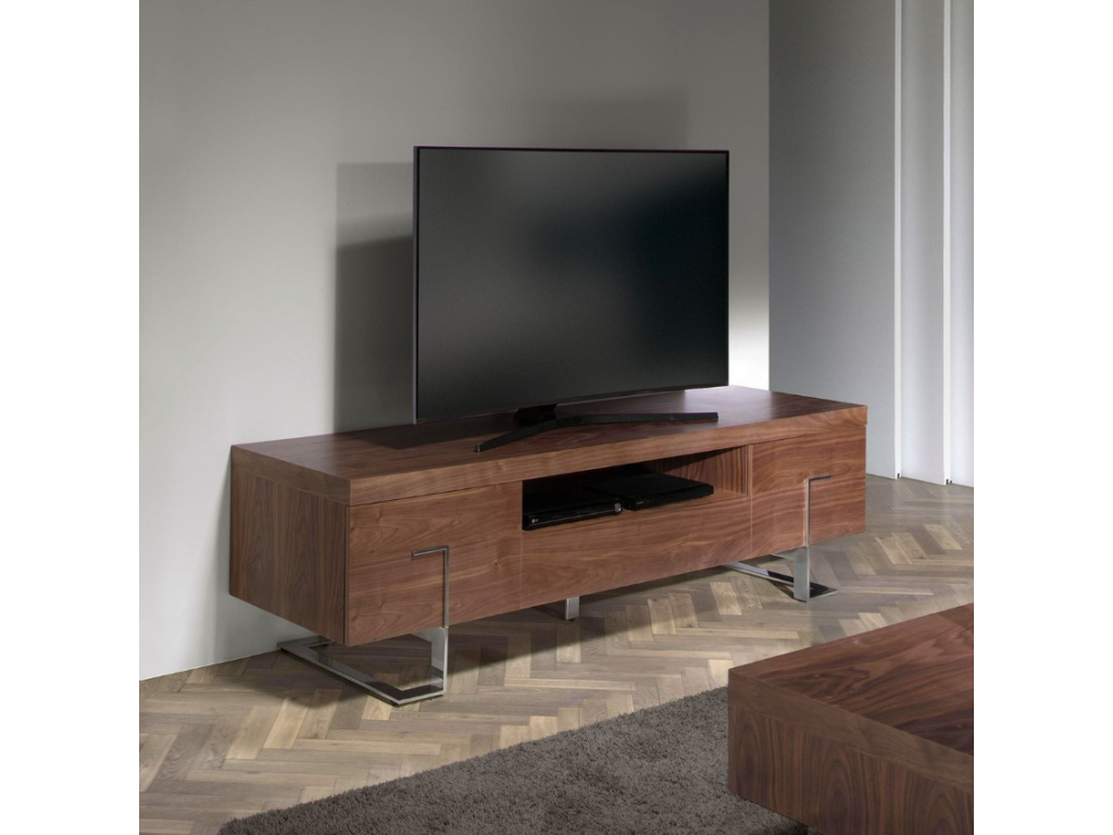 Elegantní TV stolek v přírodní ořechové dýze dodá vašemu obývacímu pokoji sofistikovaný vzhled. Nabízí praktický úložný prostor v podobě zásuvky a dvou skříněk se systémem push and pull. Chromovaná nerezová podnož mu dodává moderní, vzdušný charakter. Tento stolek je ideální volbou pro ty, kdo chtějí spojit krásu přírodního dřeva s funkčním úložným řešením.