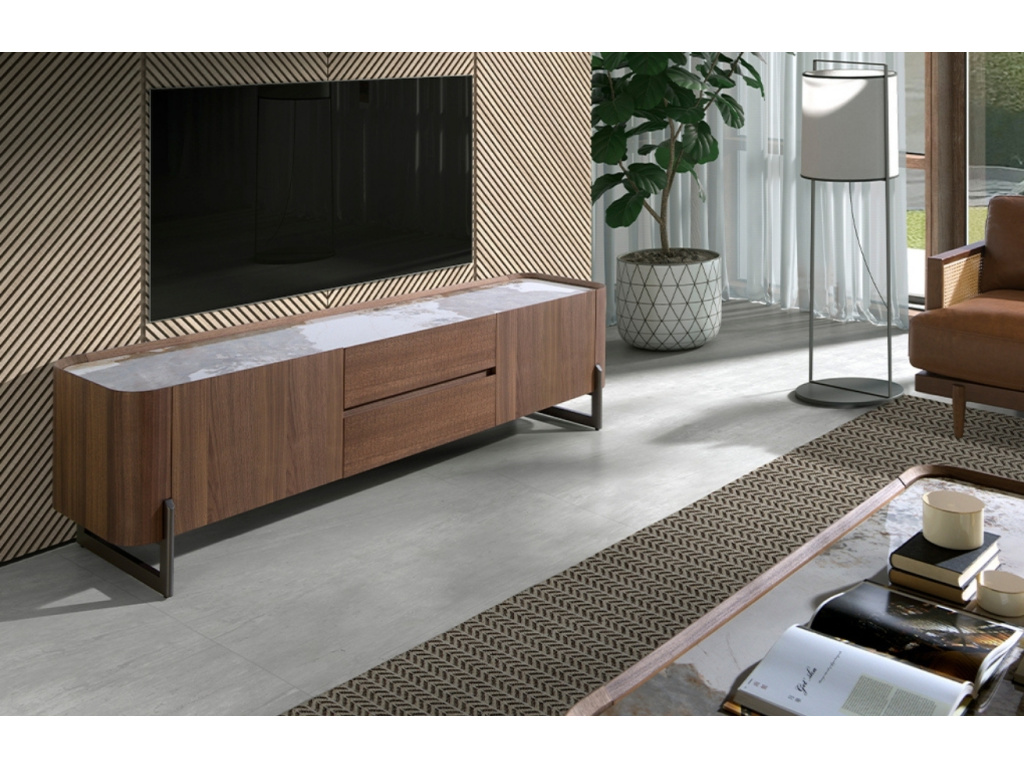 To chciOřechový TV stolek Angel Cerdá No. 3250, 200 x 45 cm s mramorovým dekorem