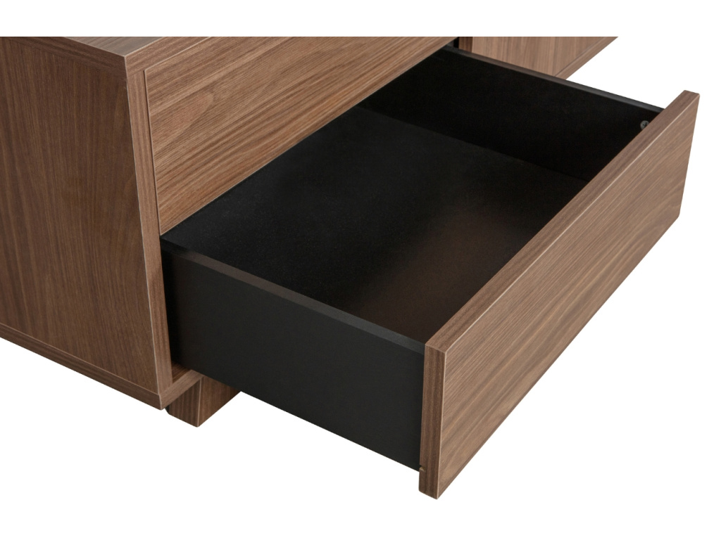 Stylový TV stolek Eppes od holandského výrobce Hoorns zaujme svým minimalistickým provedením. Konstrukce z ořechové dýhy nabízí vysokou odolnost a vašemu obýváku dodá příjemnou atmosféru a pocit tepla. Prostorné úložiště zajišťují dvě zásuvky a čtyři police, kam pohodlně uložíte oblíbené knihy nebo časopisy. Eppes snadno zapadne do skandinávsky nebo retro laděných domácností.