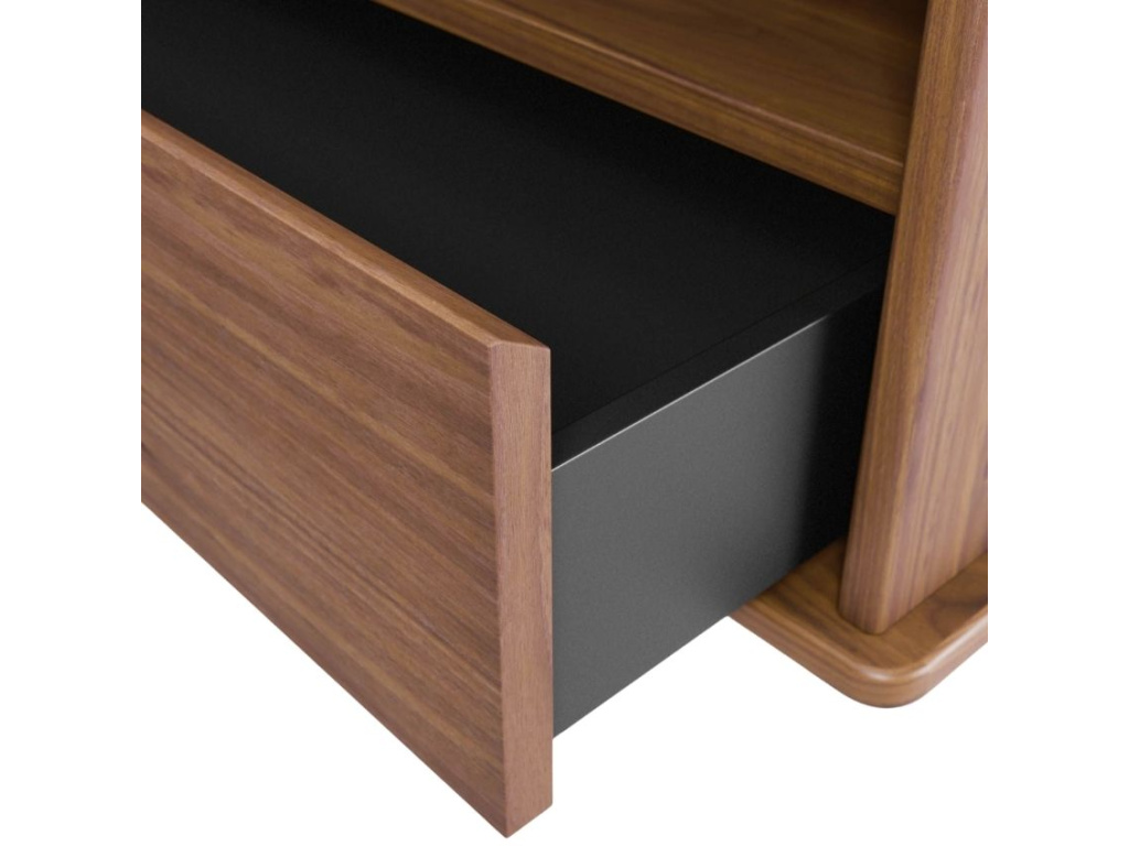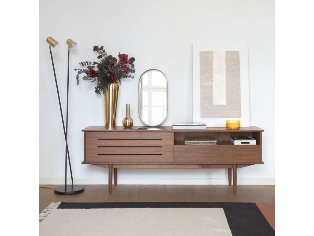 Designový ořechový TV stolek Kave Home Carolin bude vypadat dokonale v každém moderním interiéru s přírodními prvky. TV stolek Carolin se skládá z jedné zásuvky a dvou nastavitelných polic, které nabízí dostatek prostoru pro váš inventář. Pohodlné otevírání prostorného úložného prostoru zajišťují výklopná dvířka, která mají navíc větrací otvory a jsou nastavitelné. Korpus, dvířka, police i zásuvka jsou vyrobeny z ořechové dýhy. TV stolek je doplněn dřevěnou podnoží z masivního ořechového dřeva, ze kterého je vyroben i rám stolku. Doporučujeme kombinovat se zbytkem kolekce Carolin pro perfektně sladěný interiér.