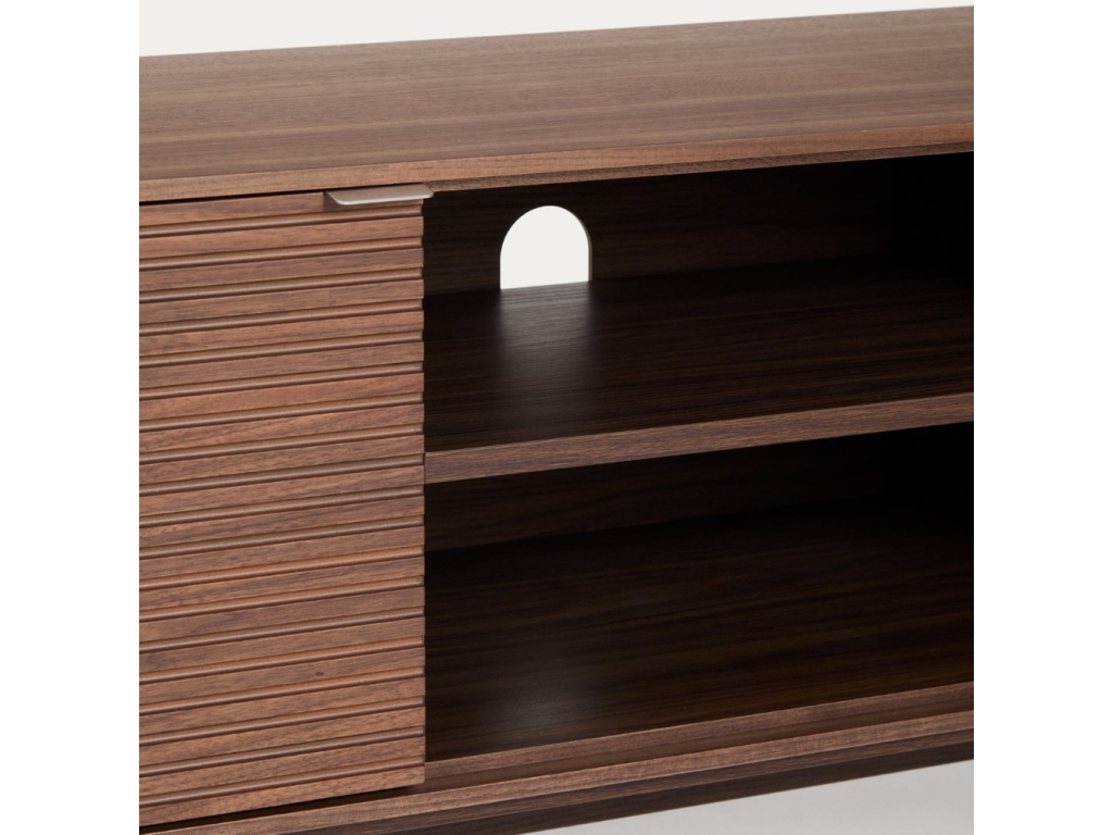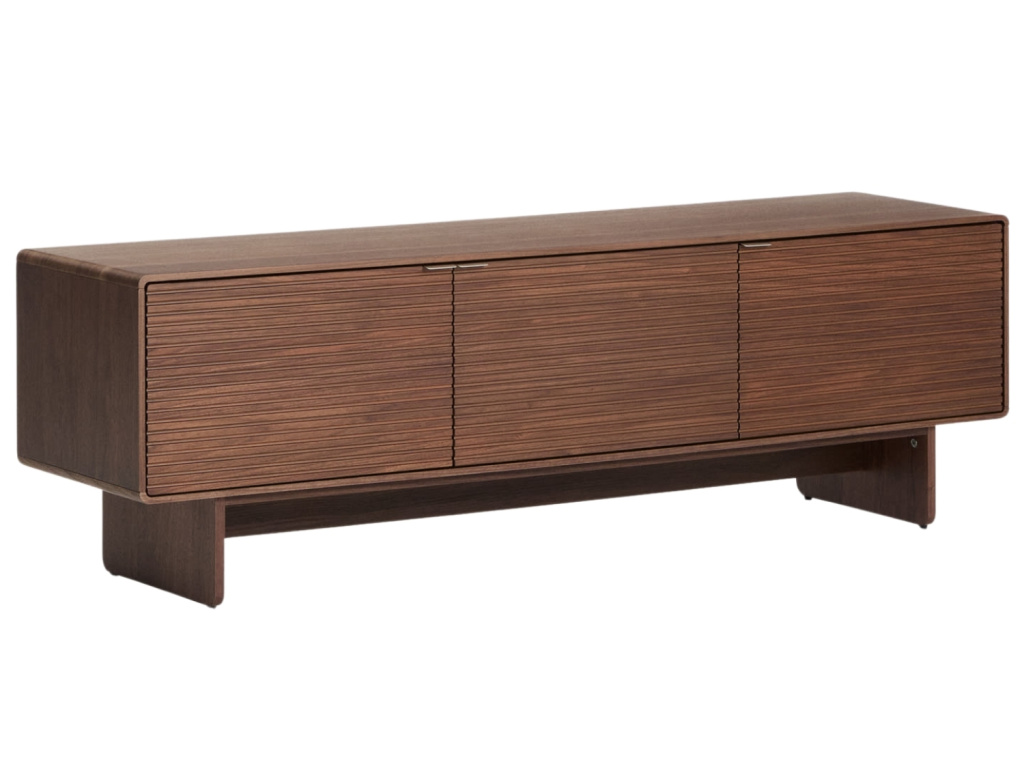 TV stolek Norlen je elegantní součástí série inspirované designem 50. let, která propojuje vintage atmosféru s moderním pojetím. Tmavá ořechová dýha je na dvířkách ozvláštněna horizontálním frézováním, které se postará o nadčasový dojem. Stolek nabízí praktické úložné řešení, které se přizpůsobí vašim potřebám, aniž by narušilo harmonii designu – šestice uzavřených polic poslouží k uschování věcí, které nechcete vystavovat na obdiv. Díky FSC certifikaci si navíc můžete být jisti odpovědným původem použitého dřeva. Norlen tak není jen TV stolkem, ale promyšleným kusem nábytku, který přinese do interiéru útulnost, funkčnost i možnost dokonale sladit vybraný prostor doplněním dalších produktů ze série.