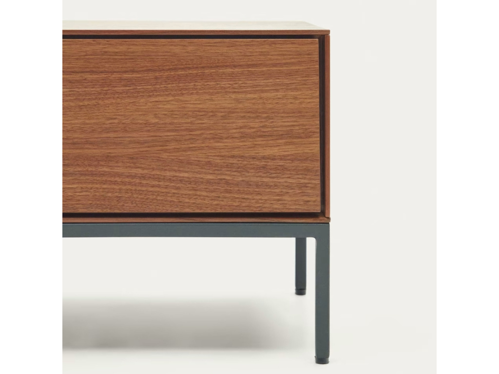 TV stolek Vedrana pochází ze stejnojmenné série nábytku vytvořeného týmem Kave Home. Tyto úložné prostory jsou velice praktické a skvěle se hodí do industriálních i minimalistických interiérů. Spojení ořechové dýhy a vyšší kovové podnože je nejen nadčasové, ale hlavně velice atraktivní. Tento široký TV stolek vám umožní uspořádat váš inventář do tří zásuvek se systémem otevírání push to open a prostorné otevřené police. Sjednoťte úložné prostory ve vaší domácnosti a vpusťte do ní sérii Vedrana! Vybírat můžete z komod a TV stolků různých velikostí, všechny jsou dostupné v provedení dub i ořech.