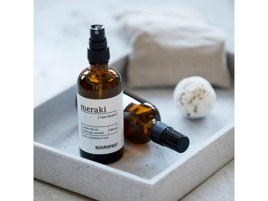 Vytvořte ve svém domově relaxační atmosféru s osvěžovačem vzduchu Rain Forest od Meraki. Rain Forest vás okouzlí vůní vodních květin, mechu a pačuli. Stačí pár stisknutí a provoní celý pokoj. Osvěžovač v malé skleněné lahvičce nezabere moc místa, můžete ho tak nosit kamkoliv s sebou.