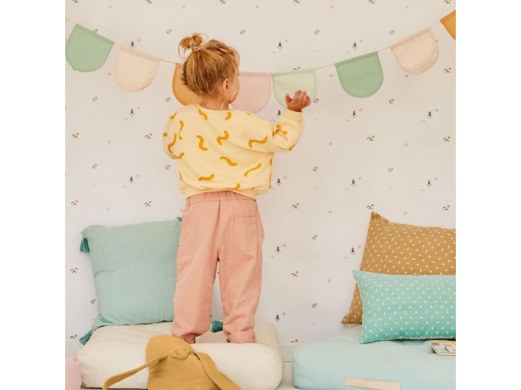 Proměňte dětský pokoj na dokonalé dětské království plné zábavy, her, smíchu a také stylu! Pomůžou vám v tom krásné a kvalitní dekorace – třeba jako girlanda Nami! Tenhle barevný závěsný řetěz je hravým doplňkem, který bude slušet každému pokojíčku. Řetěz Nami je ušitý z kvalitní látky, kterou můžete snadno vyprat a udržet v čistotě. Vyberte si z několika krásných barevných variant!