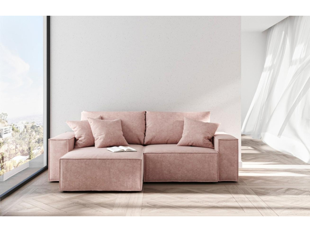 Ghado Melow je rohová pohovka, která odvážně a čerstvě reinterpretuje moderní koncept. Pohovka Melow nabízí kubické, geometrické tvary, které budí dojem měkkosti a pohodlí. Dobře zvolené prvky a masivní proporce sedáku a opěradla jsou harmonicky vyvážené, aby vytvořily nejen perfektní místo k sezení, ale také příležitostné lůžko - jak pro malé, tak pro velké interiéry. Navíc si díky variabilnímu rozložení můžete libovolně zvolit, zda bude pohovka levá či pravá. Pohovka je čalouněná příjemnou odolnou látkou v pastelově růžovém odstínu, která zvyšuje komfort a celkový design pohovky o úroveň výš. Příjemným bonusem jsou elegantní polštářky, které doladí pohovku k dokonalosti. Tato pohovka bude ideální pro průmyslové a moderní obytné prostory, ale také pro komerční prostory.