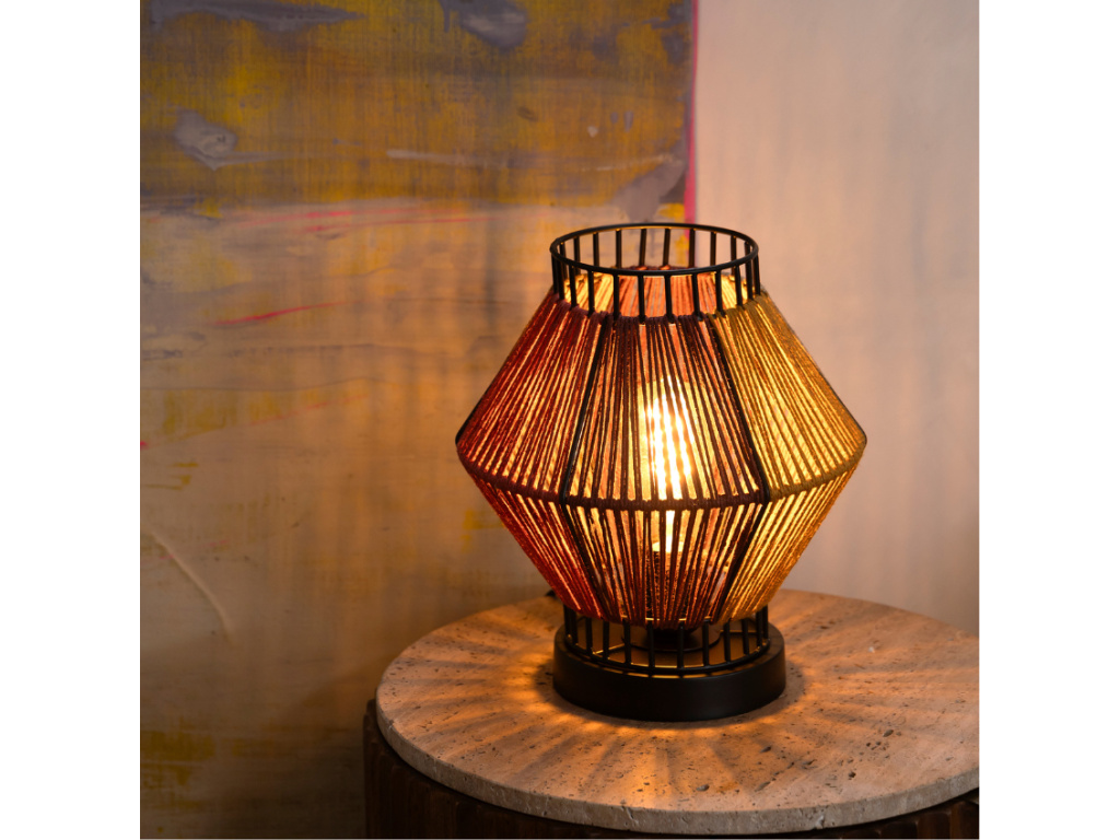 Ozvláštněte svůj interiér stolní lampou SURYA od značky DUTCHBONE. Kovová konstrukce lampy je opletena barevným provázkem v hnědé, vínové a žluté barvě. Použitá barevná paleta evokuje sedmdesátá léta minulého století, a v interiéru podtrhne retro nebo boho styl. Lampu můžete umístit do obývacího pokoje na poličku, komodu nebo stolek, využití pro ni však najdete i v ložnici na nočním stolku. Zkombinujte lampu s jedním ze stejnojmenných zrcadel z našeho sortimentu, nebo s retro nábytkem DUTCHBONE a sjednoťte tak styl svojí domácnosti.