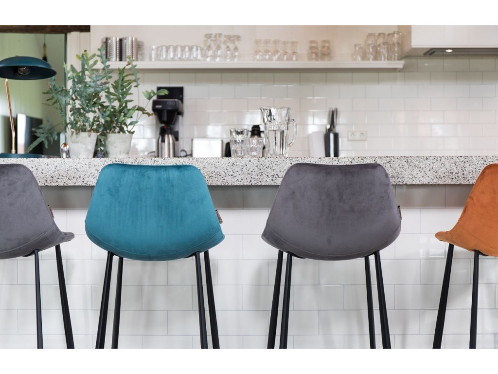 To chciPetrolejová sametová barová židle DUTCHBONE Franky 65 cm