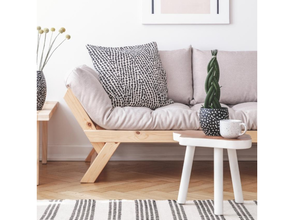 Pohodlná pohovka je základ. Doplňte svůj interiér o dvojmístnou rozkládací pohovku Bebop značky Karup Design. Jednoduchým pohybem se tato elegantní pohovka promění na praktické, a hlavně pohodlné lůžko. Konstrukce z masivního borovicového dřeva s FSC certifikací je doplněna o kvalitní 12 cm vysokou futonovou matraci, která v sobě kombinuje recyklovaná vlákna a 4cm pěnu. Praktickým detailem této pohovky jsou opěrky, které snadno sklopíte a vytvoříte tak jednolůžko například pro vašeho hosta. Bebop perfektně doplní minimalisticky a skandinávsky laděné domovy. Představuje skvělé řešení především pro menší interiéry, kde oceníte další místo na spaní. Součástí balení jsou dva polštáře. Pohovka je k dispozici v mnoha barvách matrací a další barvě konstrukce.
