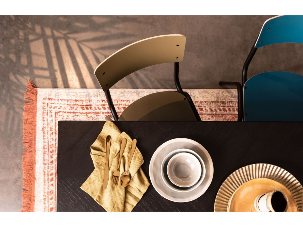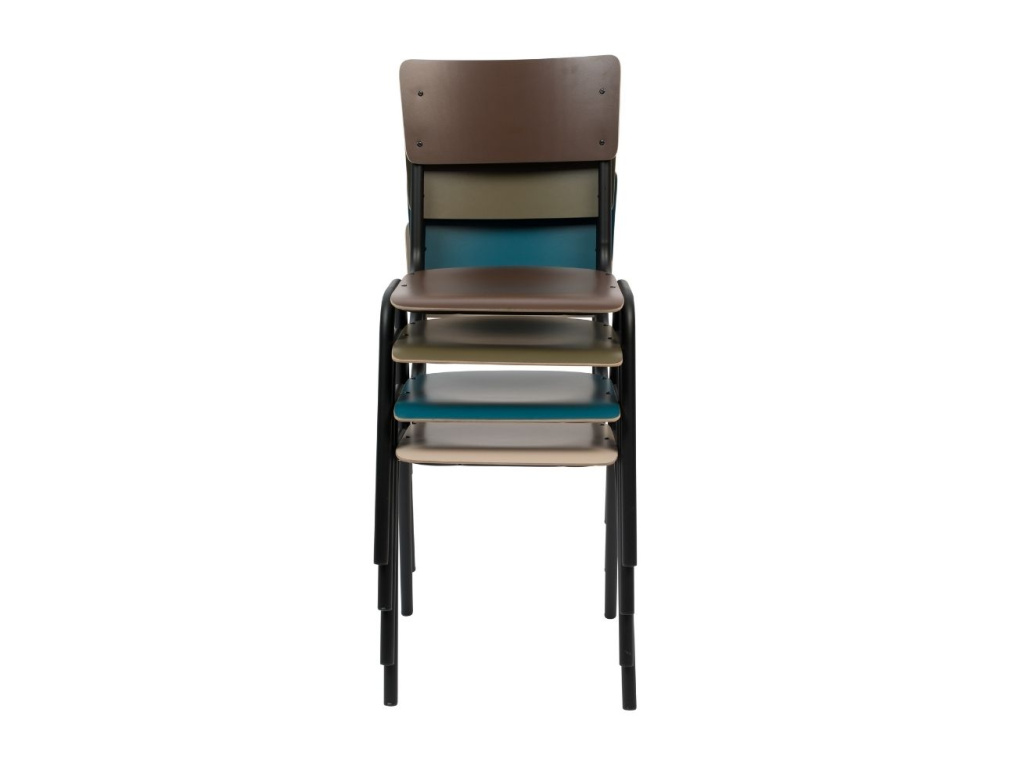 Moderní verze židle ZUIVER BACK TO SCHOOL v matně petrolejovém provedení. Sedák a opěradlo jsou vyrobeny z překližky pokryté slabým a vysokotlakým laminátem. Stohovatelná židle vyznačuje vysokou pevností a odolností vůči povětrnostním vlivům. Stabilitu celé židle pak zajišťuje pevná ocelová podnož.
