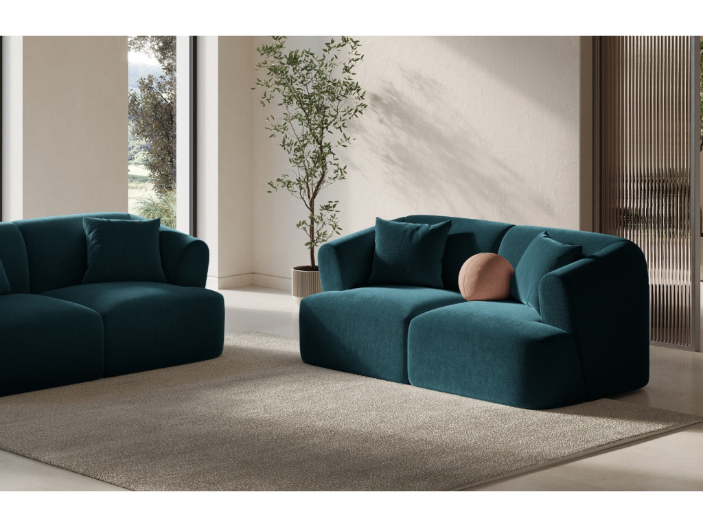 Pohovka Campi od značky Cosmopolitan Design je ztělesněním moderní elegance. Její nízký profil, výrazné zaoblené tvary a velkorysé sedáky vytvářejí dojem klidu, luxusu a sebevědomého designu. Luxusní sametové čalounění s jemným leskem a strukturovaným povrchem působí elegantně a je mimořádně odolné. Díky certifikaci OEKO-TEX® STANDARD 100 je navíc zaručeno, že látka neobsahuje žádné škodlivé látky a je zcela bezpečná i pro citlivou pokožku. Pohovka je dostupná v pestré paletě barev – od jemných neutrálních tónů až po syté, výrazné odstíny. Díky tomu si snadno vyberete variantu, která dokonale ladí s vaším stylem i náladou interiéru. Campi je dokonalým spojením moderního vzhledu a každodenního pohodlí – pro interiér, který má styl i duši.
