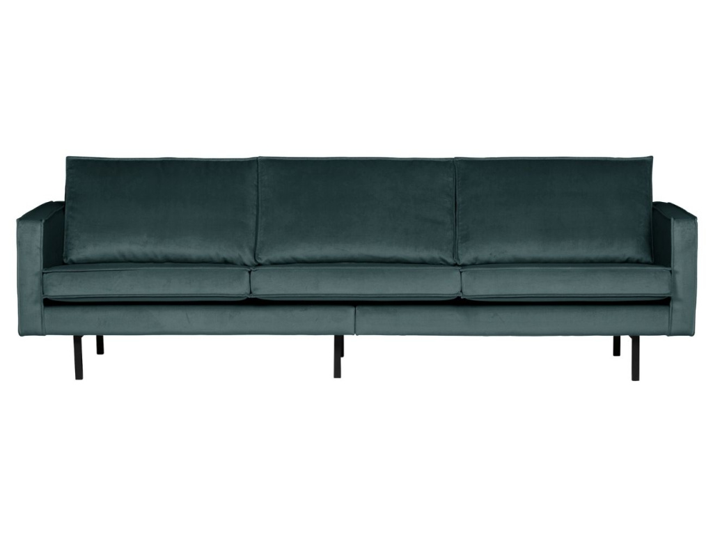 Elegantní pohovka Raden zaujme již na první pohled. Maximální komfort zaručuje měkký sedák spolu s opěrnými polštáři a také krásné, na dotek velmi příjemné, sametové čalounění v petrolejovém odstínu.