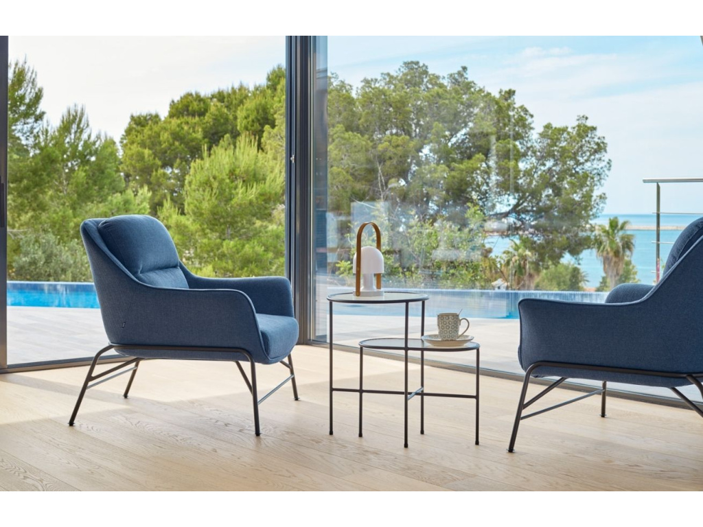 Podívám sePetrolejově modré látkové lounge křeslo Teulat Sadira