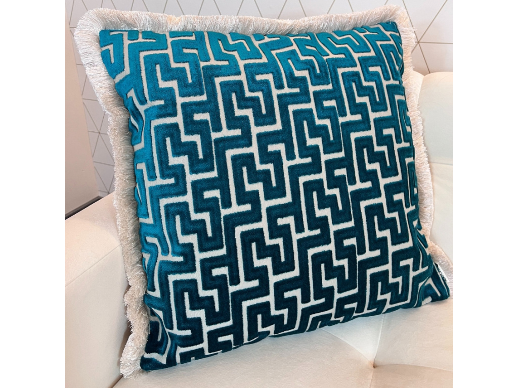Více infoPetrolejově modrý sametový povlak na polštář Labyrinth 50 x 50 cm s třásněmi