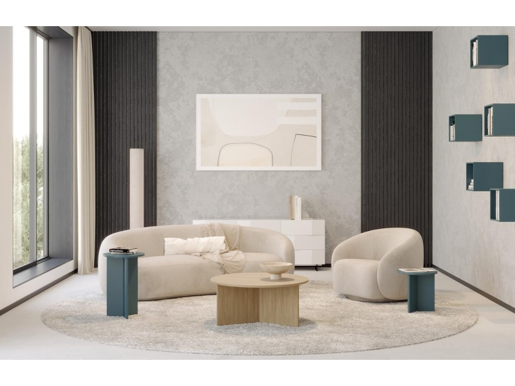 Mladá a perspektivní značka MOJO přichází s novou jedinečnou řadou stolů a stolků MINIMAL. Jedním z nich je i kulatý odkládací stolek, který zaujme svou jednoduchou elegancí a minimalistickým provedením. Laminátová deska v petrolejově modré barvě vytváří společně s netradičně zkosenou podnoží atraktivní celek, který se stane nejen ozdobou, ale především praktickým kouskem ve vaší domácnosti. Originálním designovým elementem je právě podnož, u které si zamilujete její geometrické tvary. Stolek se bude vyjímat v moderně zařízených domácnostech, ale i v komerčních prostorách, jakými jsou restaurační zařízení či hotely. Pozvěte stolek MOJO MINIMAL i k vám domů.
