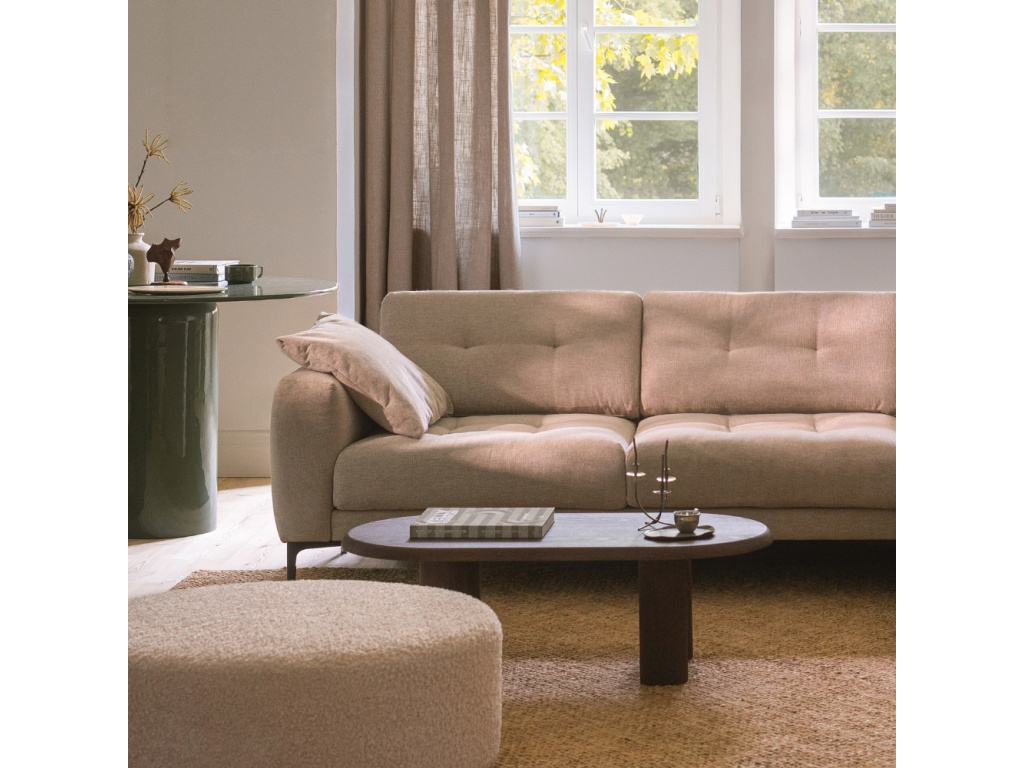 Kolekce pohovek Bemy od značky Micadoni v sobě dokonale spojuje moderní eleganci, lehkost a mimořádné pohodlí. Každý detail pohovky je promyšlený tak, aby působil nadčasově a vkusně, bez zbytečné okázalosti. Její nadčasová silueta se štíhlou kovovou podnoží působí vzdušně, zatímco hluboké a prostorné sezení vás vybízí k uvolnění a odpočinku. Čalounění ze strukturované látky Sorella dodává celku jemný charakter a příjemnou texturu. Vybírat můžete z několika pečlivě vybraných barevných odstínů, které snadno sladíte s minimalistickým i výrazněji laděným interiérem. Díky své nadčasové formě a útulnému čalounění se Bemy stane nejen vizuální dominantou vašeho obývacího pokoje, ale především místem, kde budete chtít trávit každý volný okamžik. Objevte kouzlo kolekce Bemy a dopřejte svému domovu nádech moderní elegance.