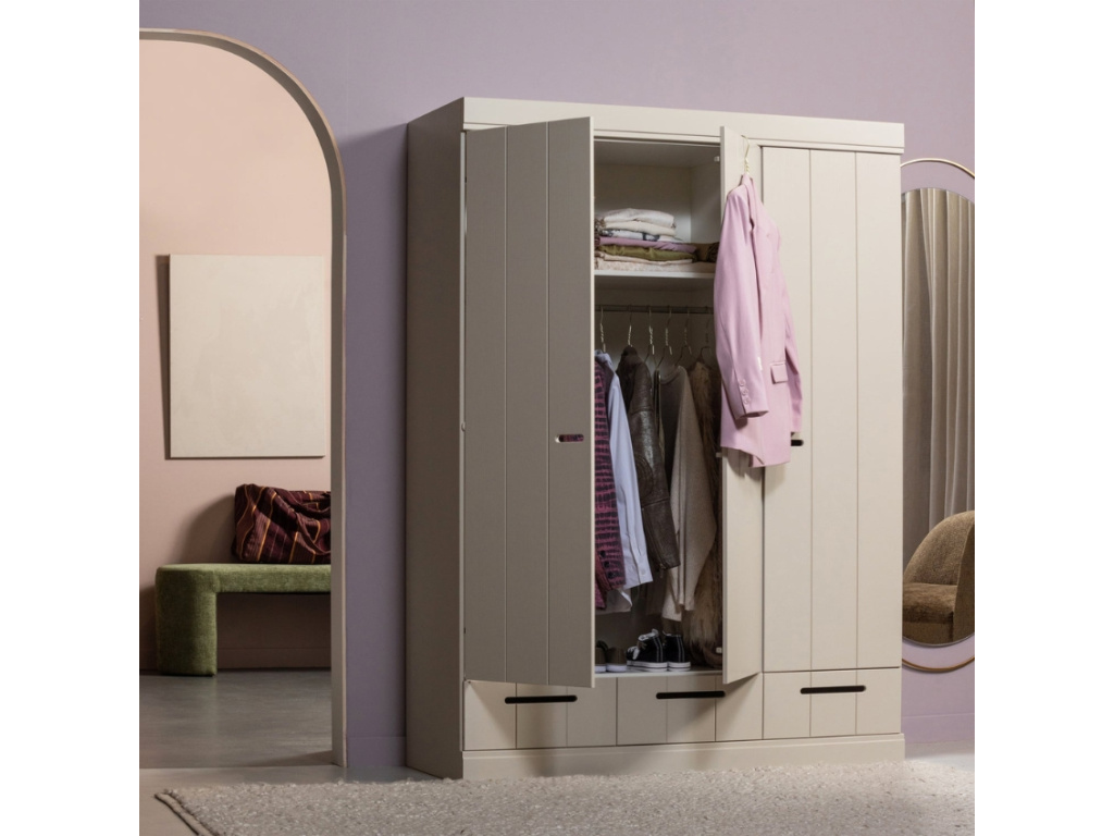 Skříň Ernie od značky WOOOD s venkovským vzhledem se stane skvostem každého interiéru a potěší milovníky jemného a elegantního stylu. Ernie je vyrobena je z borovicového dřeva s certifikací FSC a následně lakována pískově hnědou barvou. Úložný prostor je rozčleněn na tři zásuvky, 5 polic a tyč na zavěšení ramínek. Její čistý a minimalistický design zapadne do všech moderních interiérů, ale bude se také skvěle vyjímat v interiérech v rustikálním nebo japandi stylu. Ernie bude vypadat skvěle samostatně nebo ve spojení s dalšími skříněmi ze stejnojmenné řady.