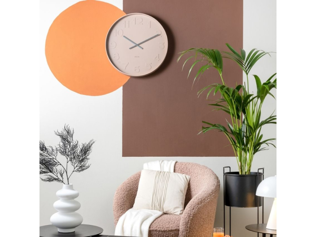 Hodiny Carissa mají kruhový tvar, pískově hnědou barvu a ciferník s vytlačenými čísly a stříbrnými ručičkami. Hodiny se budou skvěle vyjímat v každém designovém interiéru.