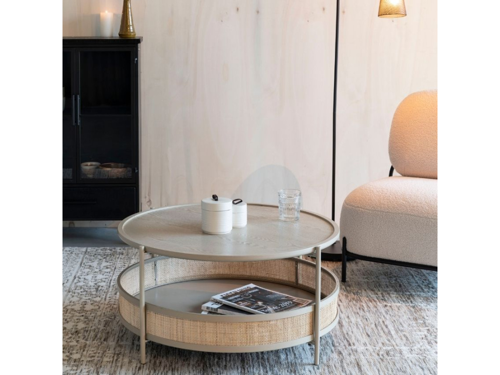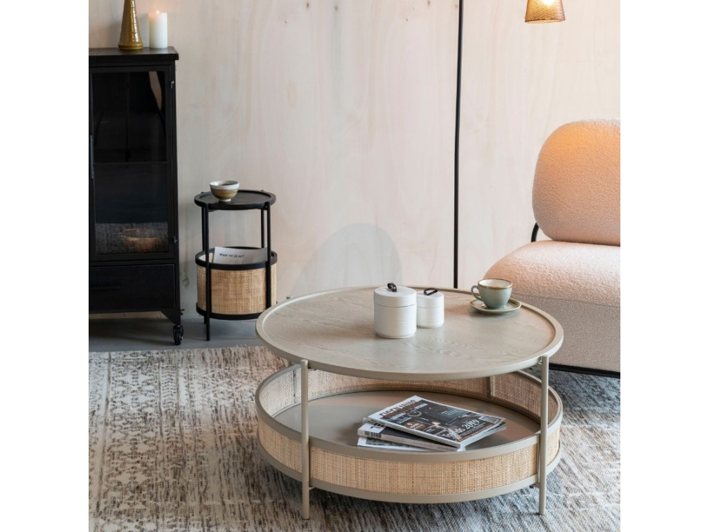 Podívám sePískově hnědý konferenční stolek WLL MAKOTO s ratanovým výpletem 80 cm