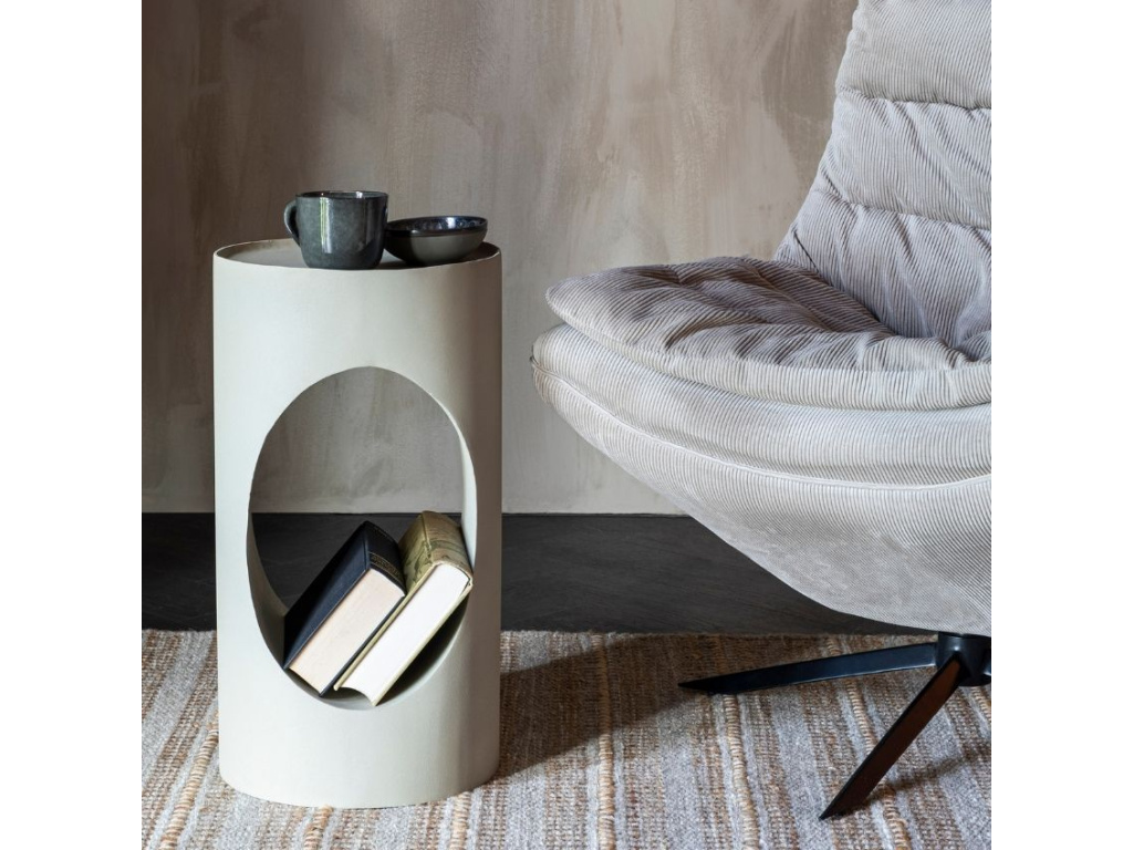 Odkládací stolek SAI značky DUTCHBONE zaujme svým originálním designem. V jeho podstavě najdete velký oválný otvor, který můžete využít jako prostor k uložení knížek nebo časopisů. Stolek je vyroben z kovu, který je nalakován pískově hnědou barvou. Dostupný je také v černé barvě. Stolek se skvěle hodí ke gauči nebo křeslu, kde na něj můžete odkládat šálek s kávou nebo čajem.