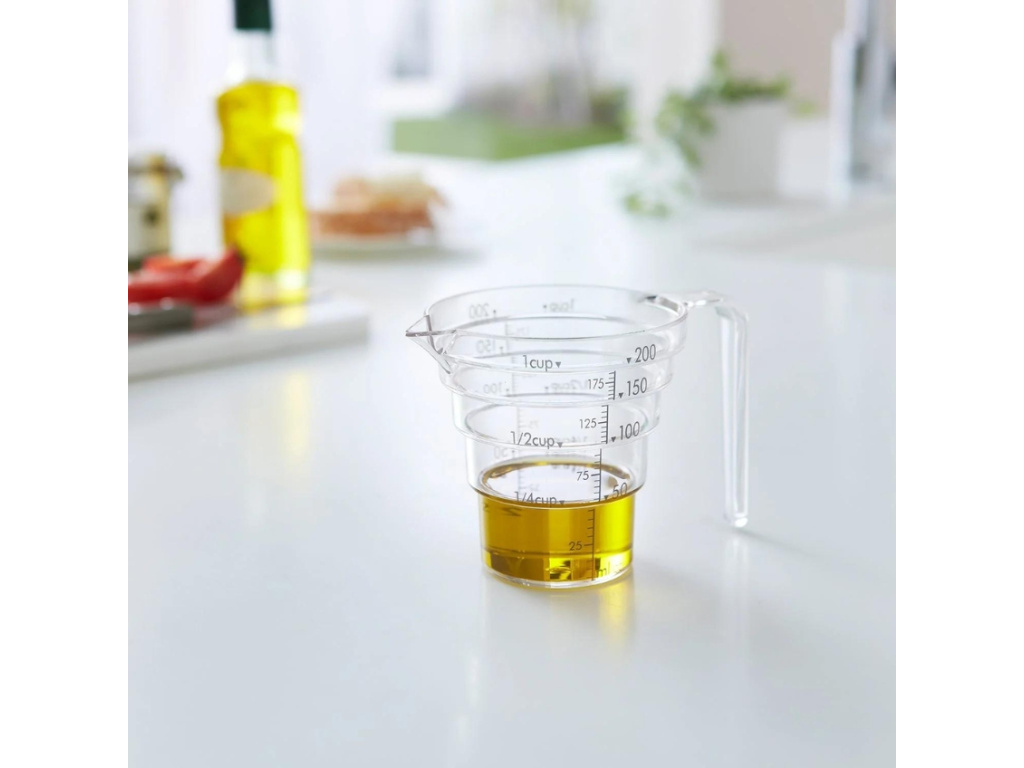 Odměrka Layer bude praktickým a stylovým doplňkem do vaší kuchyně. Odměrka je vyrobena z tritanového plastu, který lze užít pro ohřev mikrovlnné troubě a mýt v myčce na nádobí. Layer je tvarována po dílech (každý je o objemu 50 ml), což vám pomůže správně odměřit množství potřebných ingrediencí. Celkový objem je 200 ml, což se rovná jednomu šálku. Vybavte svou kuchyni praktickými pomocníky od značky Yamazaki.
