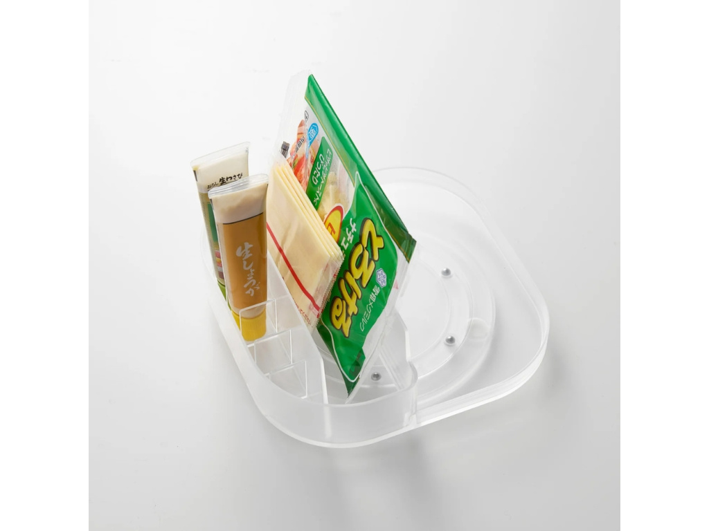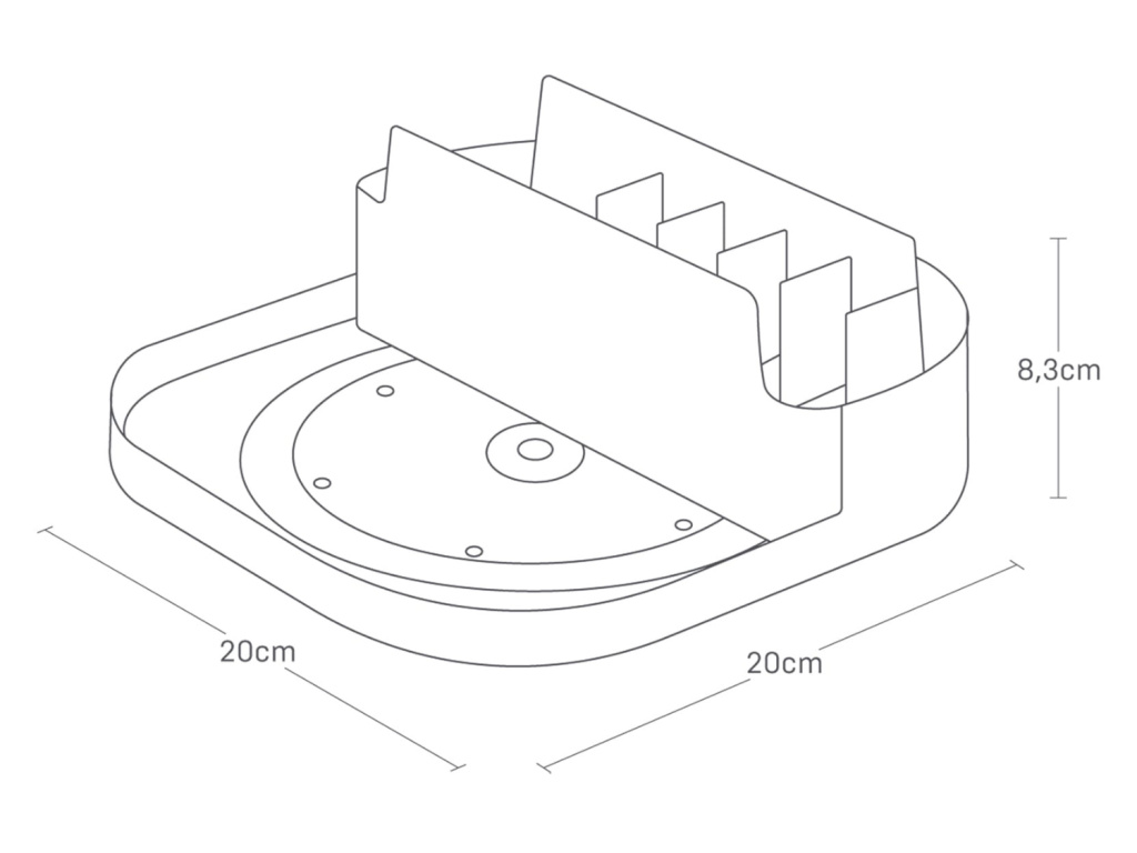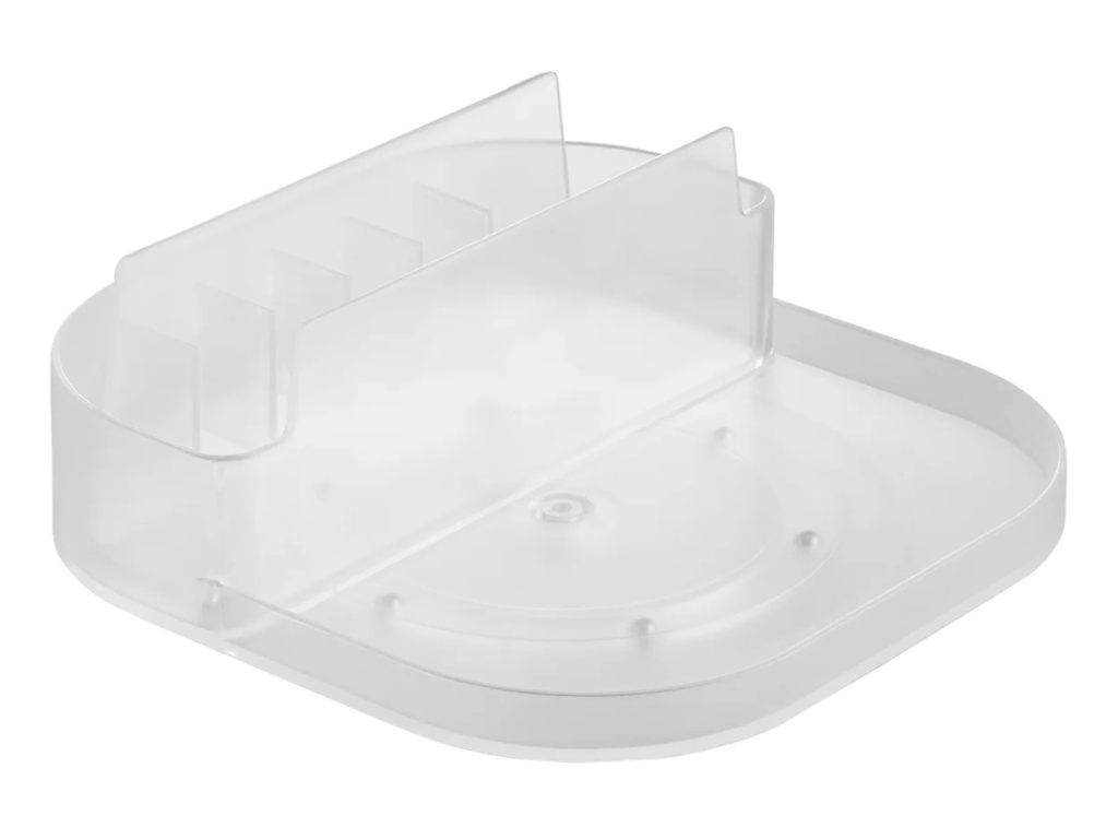 Otočný organizér Tower od značky Yamazaki nabízí promyšlený způsob, jak mít drobnosti vždy přehledně uspořádané a snadno dostupné. Díky otočné ploše o 360° se bez námahy dostanete ke všem uloženým věcem z každého úhlu. Nízký, kompaktní tvar šetří místo a skvěle se hodí do lednice, kuchyňské skříňky i spíže. Organizér je vybaven jednou velkou a šesti menšími přihrádkami, které usnadňují třídění potravin, koření nebo drobných doplňků. Tělo z odolného polystyrenu doplňují silikonové protiskluzné prvky, jež zajišťují stabilitu. Tower spojuje funkčnost s čistým designem a přinese do domácnosti pořádek s lehkostí a elegancí.