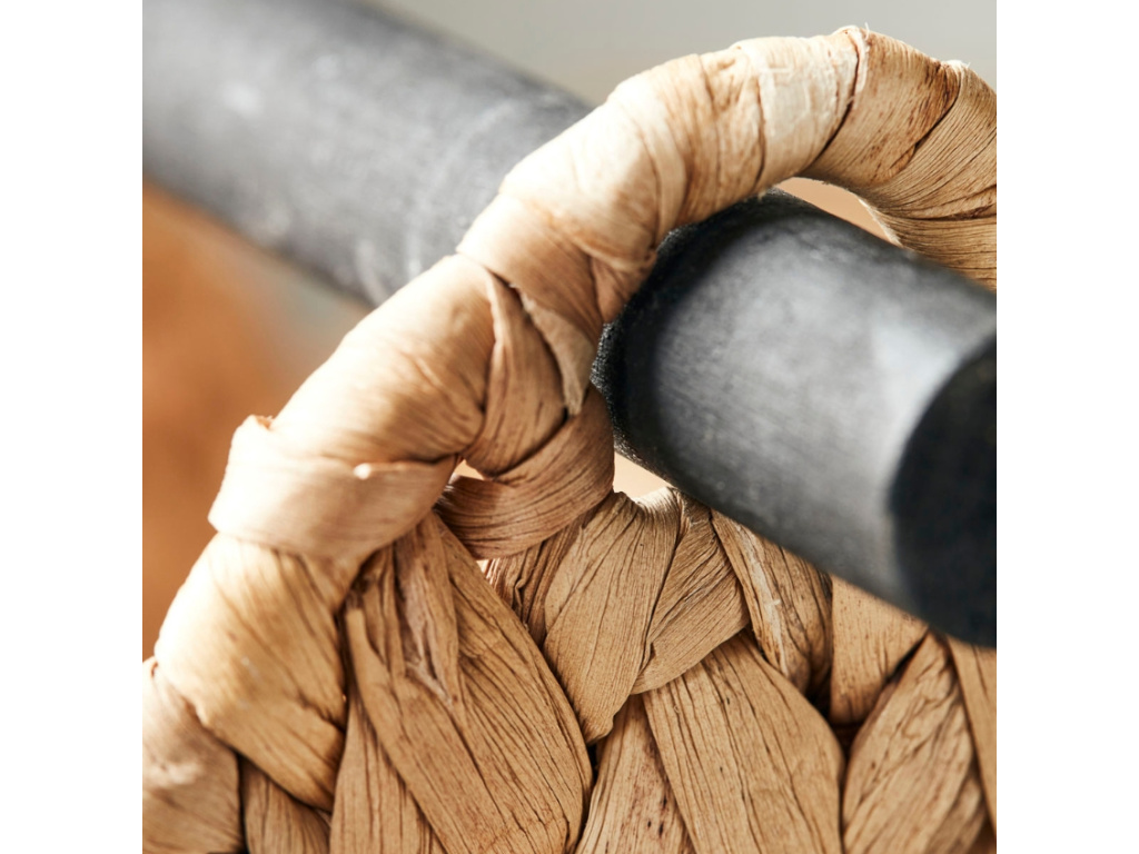 S držákem na toaletní papír Natural od House Doctor získáte praktické i stylové řešení na vaši toaletu. Koš je dostatečně prostorný, abyste ho naplnili ruličkami toaletního papíru a měli je tak stále po ruce. Je vyrobený z pleteného vodního hyacintu v čistém přírodním provedení a doplněný černou tyčí z eukalyptového dřeva. Tyč na ruličky slouží zároveň jako rukojeť – košík tak můžete kdykoliv snadno přemístit, kam bude potřeba. Držák Natural dodá vaší koupelně a toaletě útulný a elegantní nádech.