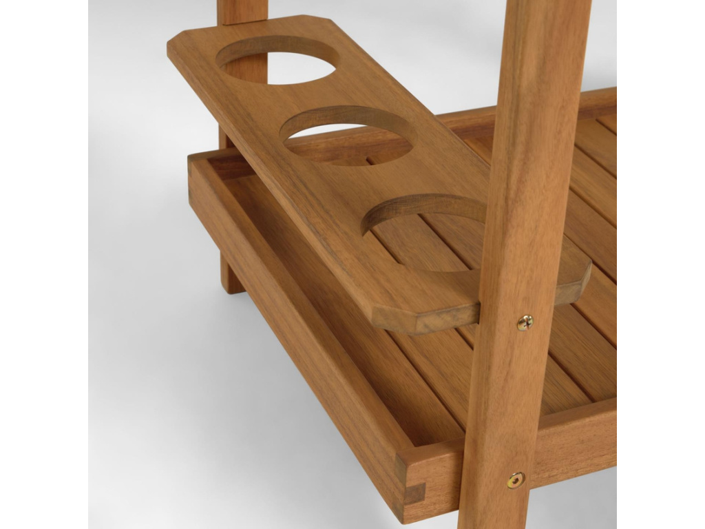 Zahradní servírovací stolek LaForma Felisa z masivního akátového dřeva bude skvělým doplňkem na každé zahradní slavnosti. Vozík má dvě prostorná patra, na která se vejde spousta občerstvení. Spodní patro je doplněno praktickým držákem na lahve, který zabrání nežádoucímu vylití nápoje. Samozřejmostí jsou dvě kolečka, díky kterým bude přemisťování vozíku hračka.