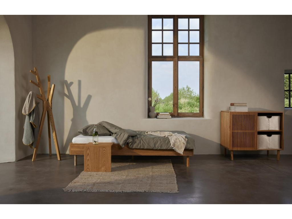Designová postel Quax Hai-No-Ki je inspirována japonskými vzdušnými interiéry. Elegantní dýhovaná MDF s kresbou jasanového dřeva, ze kterého je vyrobena i podnož vnese nádech přírody do minimalistických i skandinávských interiérů.