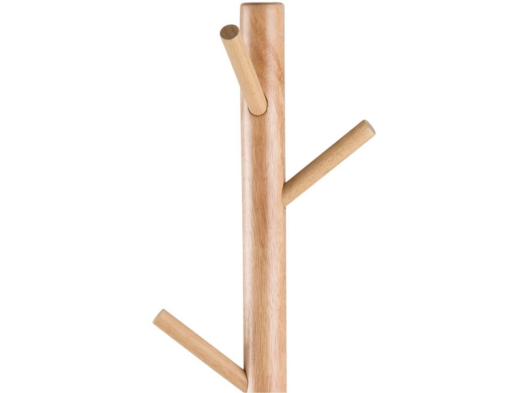 Designový stojanový věšák Hamburg II z lakovaného dřeva v elegantní přírodní hnědé barvě vás zaujme svým minimalistickým designem, který osvěží každý interiér a je možné ho snadno kombinovat s ostatním nábytkem. Jednotlivé háčky vybíhají šikmo nahoru přímo ze středové části, podobně jako větve z kmene stromu. Skvěle oživí každou domácnost, předsíň, chodbu, stejně tak komerční a hotelové prostory.