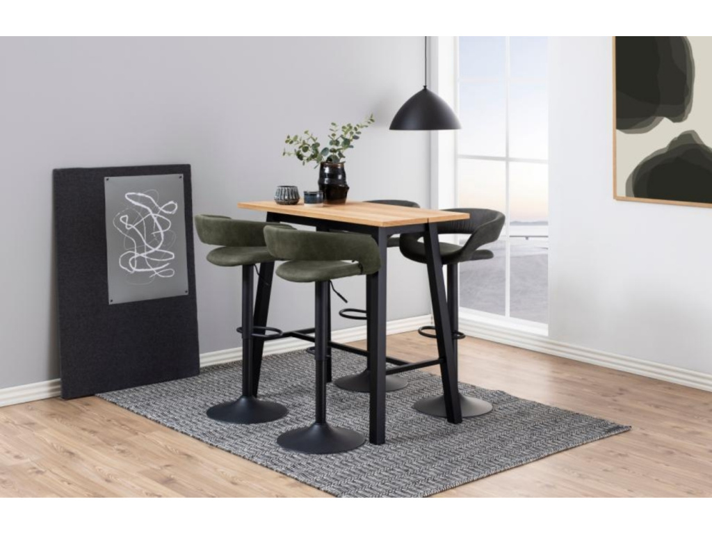 Barový stůl Rachel s deskou z dubové dýhy v přírodním odstínu a černě lakovanou podnoží vynikne v moderních i klasických interiérech s přírodními prvky i doplňky ve vintage a industriálním stylu. Chcete-li do své kuchyně kvalitní a stylový barový stůl, který zaujme, je stůl Rachel výbornou volbou.