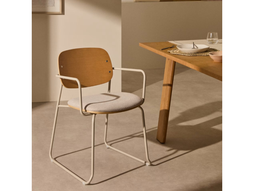 Jídelní židle Kave Home Meli kombinuje pečlivě vybrané materiály tak, aby nabídla moderní nadčasový design a funkčnost v každém prostoru. Kombinace dřeva, oceli a žinylkového čalounění vytváří elegantní rovnováhu, díky které židle zapadne do minimalistických, scandi i industriálních interiérů – ať už hledáte stylový doplněk do jídelny, nebo pohodlné sezení do kreativního pracovního prostoru! Vybírat můžete z několika barevných variant, které můžete stylově kombinovat. K dostání je také ve variantě bez područek.