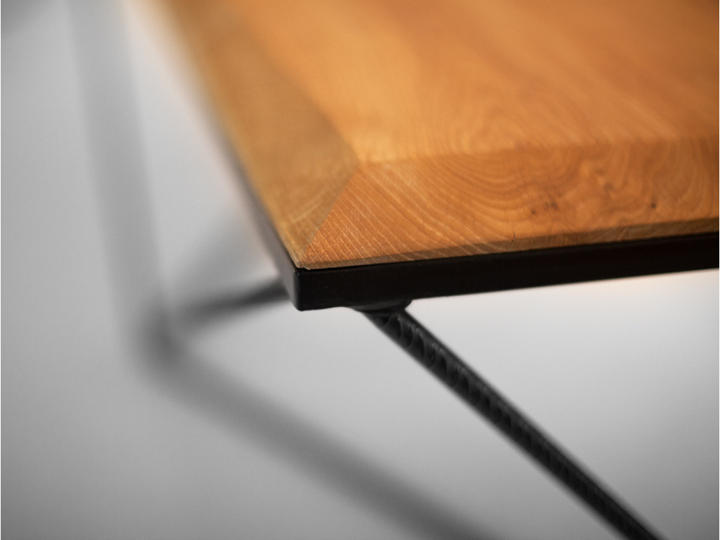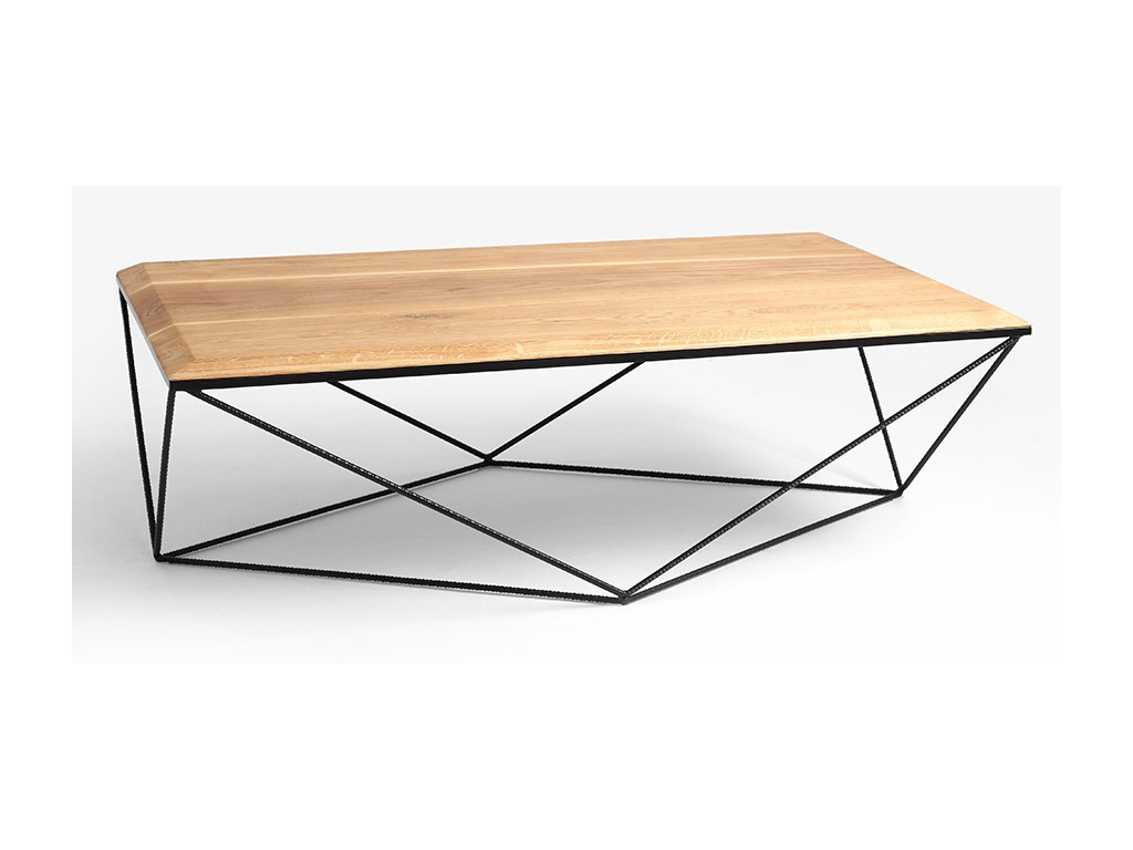 Konferenční stolek Deryl se vyznačuje svým neobvyklým tvarem podnože a industriálním vzhledem. Díky svému tvaru se skvělé hodí do moderních interiérů. Dřevěná deska z dubového dřeva disponuje netradičním zkosením rohů, čímž podkresluje celkový vzhled stolku.