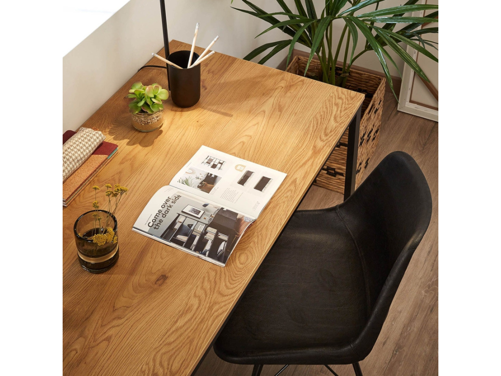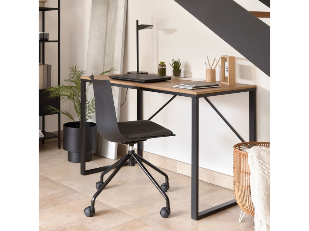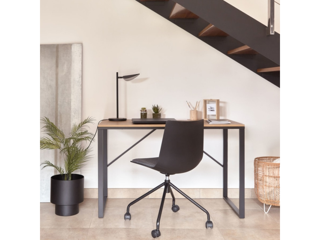 Pracovní stůl Kave Home Talbot vás zaujme svým moderním vzhledem a nádechem industriálního stylu. Deska stolu je vyrobená z MDF desky potažené fólií v dekoru dřeva. Ta v kombinaci s černě lakovanou, ocelovou podnoží působí stylově a moderně. Stůl se hodí do moderních interiérů s tmavými doplňky a dekoracemi.