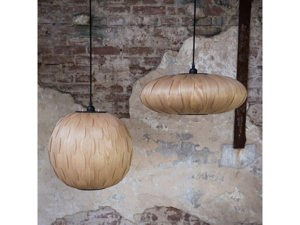 Přírodní závěsné světlo Bond je originálním osvětlením, které zaujme tvarem stínidla i použitým materiálem. Světlo Bond nejlépe vynikne nad jídelním stolem a díky přírodnímu odstínu dřevěné dýhy vykouzlí v interiéru příjemnou, útulnou atmosféru.
