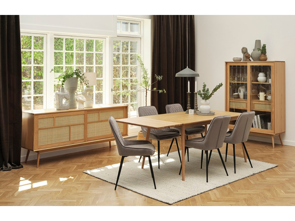Jídelní stůl Barrali od značky Unique Furniture můžete kdykoliv snadno prodloužit pomocí prodlužovací desky ze stejnojmenné kolekce. Pomocí jednoduchého mechanismu desku kdykoliv snadno nasunete a zase sundáte a sklidíte. Bude skvělým pomocníkem při početnějších návštěvách a rodinných setkáních.