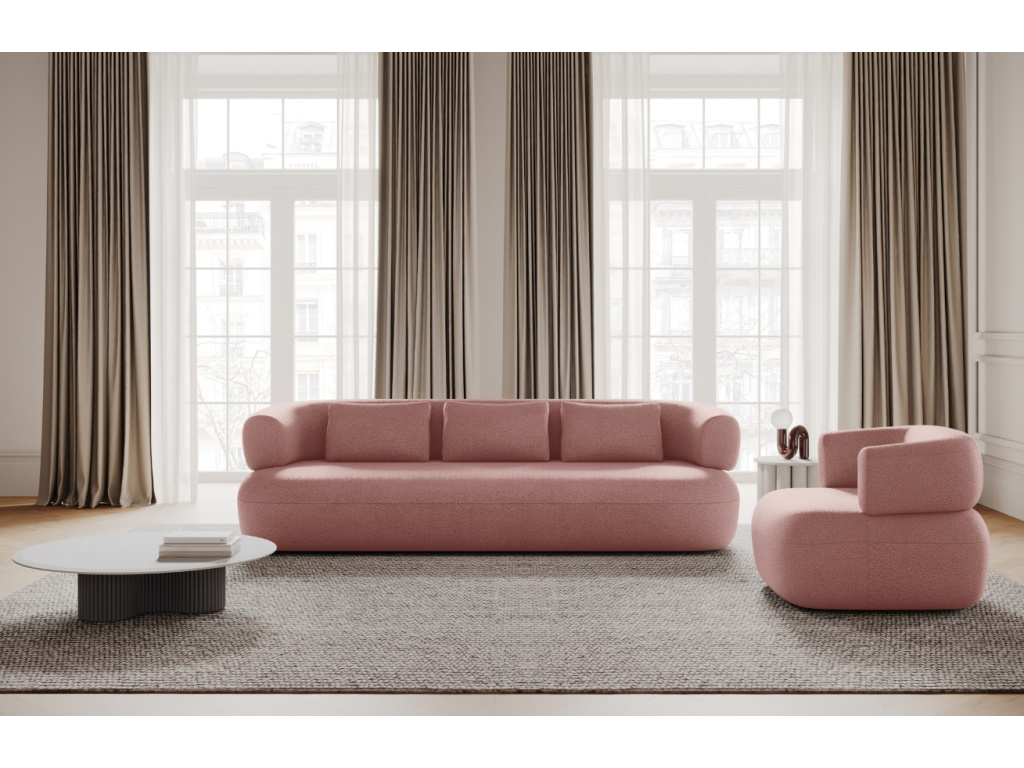 V jednoduchosti je krása. Tento fakt potvrzuje čtyřmístná pohovka Aldrin od značky Windsor & Co. O vaše maximální pohodlí se postará příjemné bouclé čalounění v pudrově růžovém provedení, které vás doslova pohltí. Tkanina je velmi odolná proti oděru, čímž zaručí dlouhodobé používání bez známek opotřebení. Pohovka Aldrin svými proporcemi nabídne nejen prostorné a pohodlné místo, ale zamilujete si také její čisté linie a nadčasový vzhled. Pro sjednocení vašeho sedacího koutu doporučujeme pohovku doplnit také stylovými podnožkami ze stejnojmenné série. Všechny produkty nabízíme v několika barvách. Odpočiňte si a relaxujte ve stylu!
