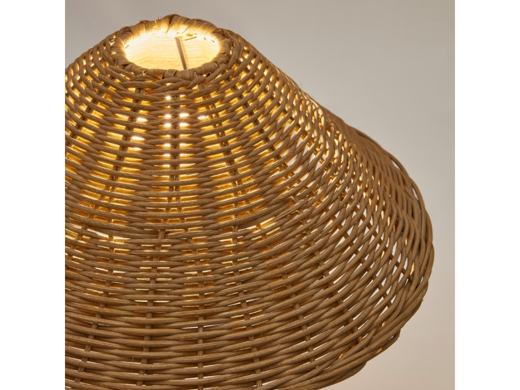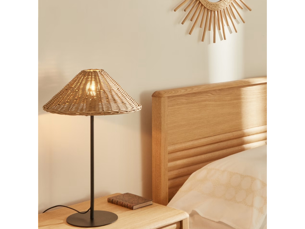Stolní lampa Urania se skvěle hodí do interiérů zařízených v rustikálním stylu. Její štíhlá kovová podstava černé barvy je vkusně doplněna pleteným ratanovým stínidlem, které vnese do prostoru příjemné osvětlení a zútulní ho. Doporučujeme pořídit si ji společně se stojací lampou ze stejné série – budou se dokonale doplňovat!