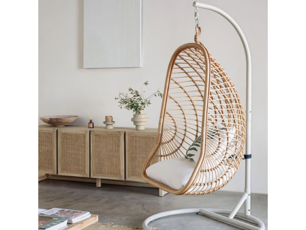 Podívám seRatanové závěsné křeslo s tmavě šedým stojanem Kave Home Ekaterina