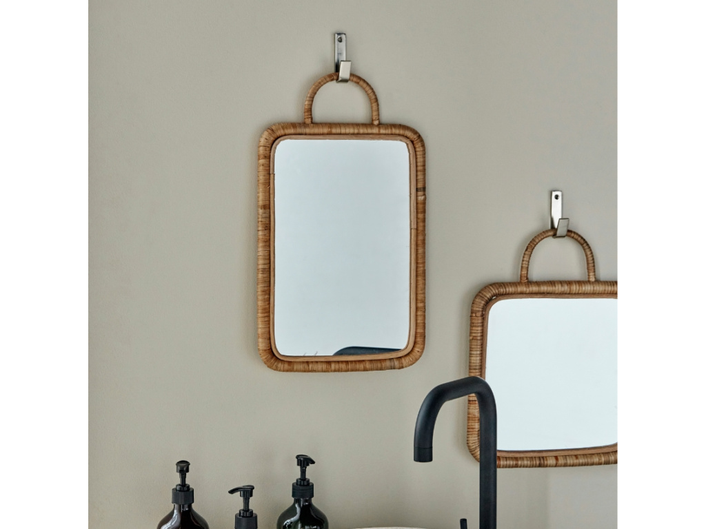 Závěsné zrcadlo Meraki Baki s rámem z ratanu vnese do vašeho domova boho atmosféru a kousek přírody. Má obdélníkový tvar, decentně zaoblené rohy a praktické poutko, za které lze snadno a kamkoliv zavěsit. Lze umístit samostatně nebo můžete vytvořit hravou kompozici společně s dalšími variantami ze série Baki – a to ať už v předsíni, koupelně nebo třeba v obývacím pokoji.