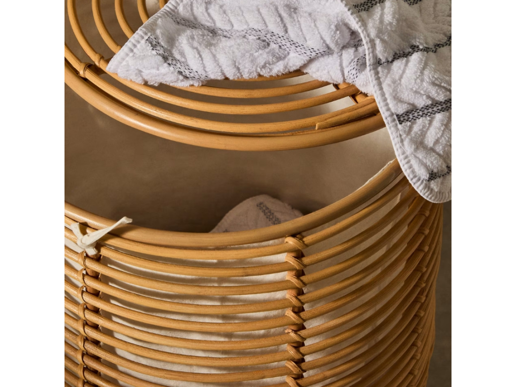 Liora není jen obyčejný koš na prádlo – je to stylový a funkční doplněk, který zútulní vaši koupelnu, ložnici nebo šatnu. Je tkaný ručně z přírodního ratanu na pevném kovovém rámu, zaujme svým vzdušným vzhledem a jemným řemeslným zpracováním. Nabízí dostatek prostoru, aniž by působil těžkopádně. Každý kus je originál – s lehce odlišnou texturou a odstínem, které podtrhují přirozenou krásu materiálu. Liora je ideální pro ty, kdo chtějí propojit praktičnost s estetikou a vnést do domácnosti kousek přírody i řádu.