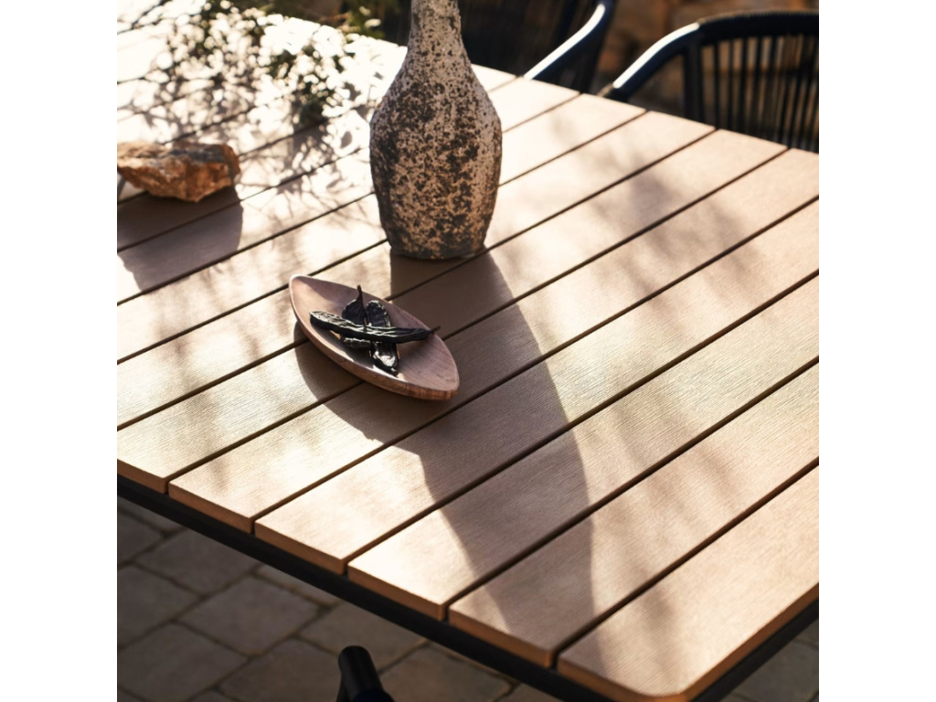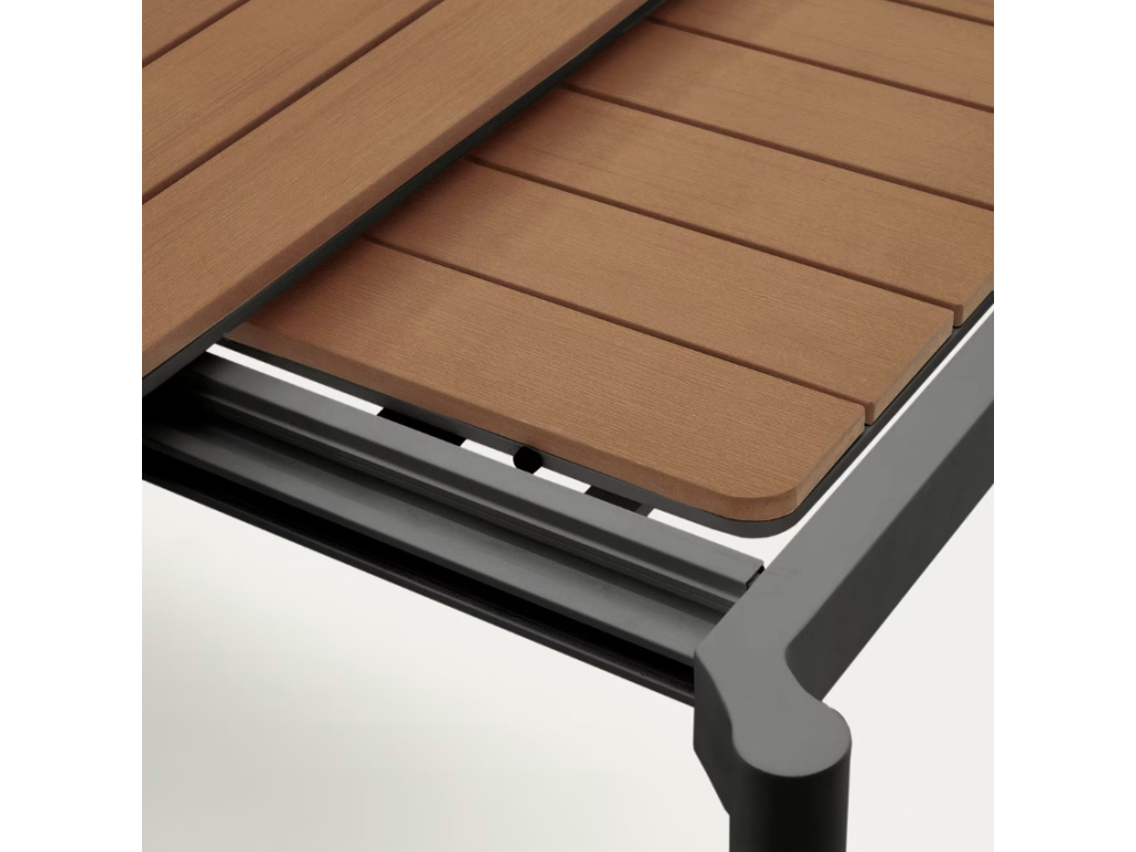 Na vaši zahradní párty budou moci díky stolu Canyelles kdykoliv přijít nečekaní hosté. Kdykoliv ho snadno rozložíte a získáte tak další místa k sezení. Jeho velkou výhodou je také použití materiál, díky kterému s vámi vydrží po dlouhá léta. Jeho deska je z polywoodu (je známý také jako dřevoplast), který vyniká právě svou extrémní životností a maximální odolností. Navíc se pyšní dokonalým vzhledem pravého dřeva a je téměř bezúdržbový – už žádné nátěry a laky. Dřevoplast je navíc také nehořlavý a odolný nejen vůči UV záření, ale také proti vodě, chemikáliím, plísním a houbám. Deska je doplněna podnoží z hliníku, který ji svým černým zbarvením skvěle doplňuje.