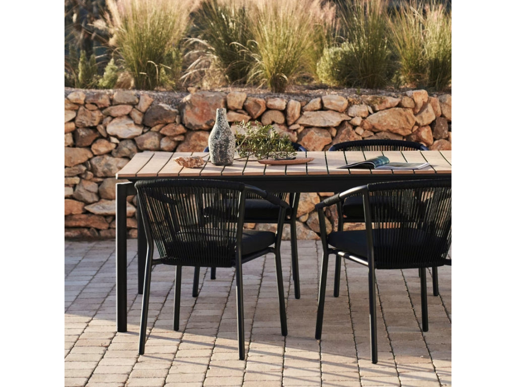 Na vaši zahradní párty budou moci díky stolu Canyelles kdykoliv přijít nečekaní hosté. Kdykoliv ho snadno rozložíte a získáte tak další místa k sezení. Jeho velkou výhodou je také použití materiál, díky kterému s vámi vydrží po dlouhá léta. Jeho deska je z polywoodu (je známý také jako dřevoplast), který vyniká právě svou extrémní životností a maximální odolností. Navíc se pyšní dokonalým vzhledem pravého dřeva a je téměř bezúdržbový – už žádné nátěry a laky. Dřevoplast je navíc také nehořlavý a odolný nejen vůči UV záření, ale také proti vodě, chemikáliím, plísním a houbám. Deska je doplněna podnoží z hliníku, který ji svým černým zbarvením skvěle doplňuje.