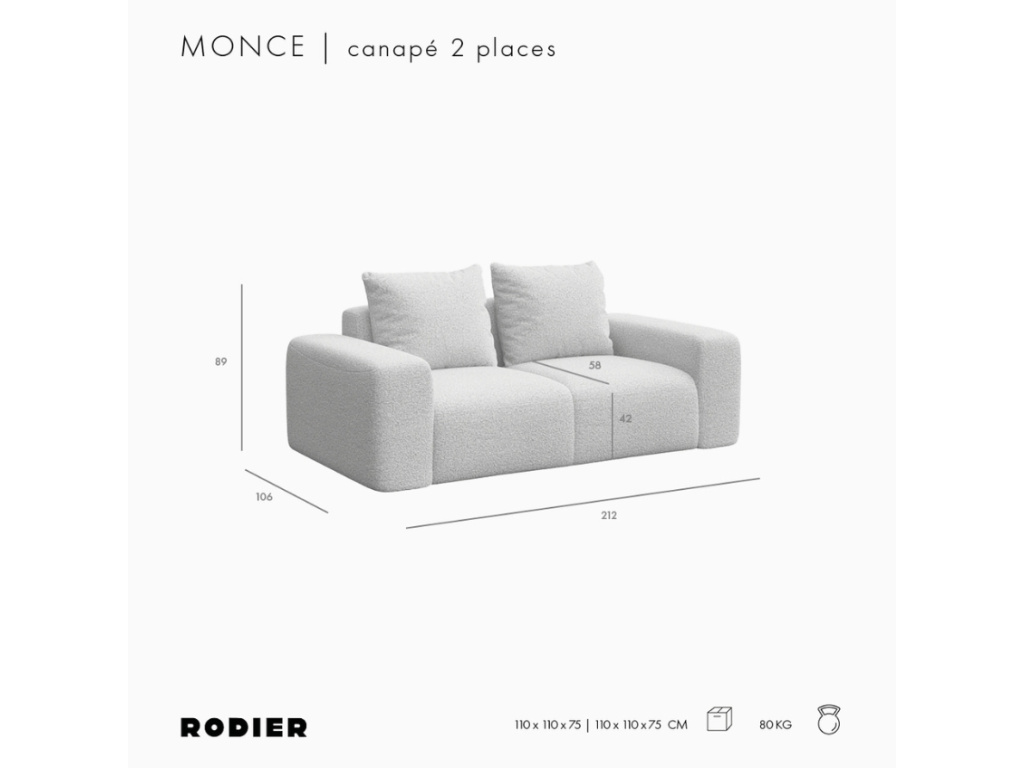Kolekce Monce od značky Rodier je ztělesněním klidné elegance a promyšleného designu, který nepodléhá trendům, ale vytváří nadčasový domov. Jemně zakřivené linie a dokonale vyvážené proporce působí přirozeně a harmonicky, zatímco měkké kontury dodávají prostoru nádech noblesy. O vaše maximální pohodlí se postará příjemné bouclé čalounění. Tento nadčasový materiál není jen krásný, ale také mimořádně odolný vůči oděru, čímž zaručí dlouhodobé používání bez známek opotřebení. Ať už sáhnete po dvoumístné, trojmístné, rohové pohovce nebo podnožce, kolekce Monce vás obklopí vizuální měkkostí a opravdovým pohodlím. Odpočiňte si a relaxujte ve stylu!