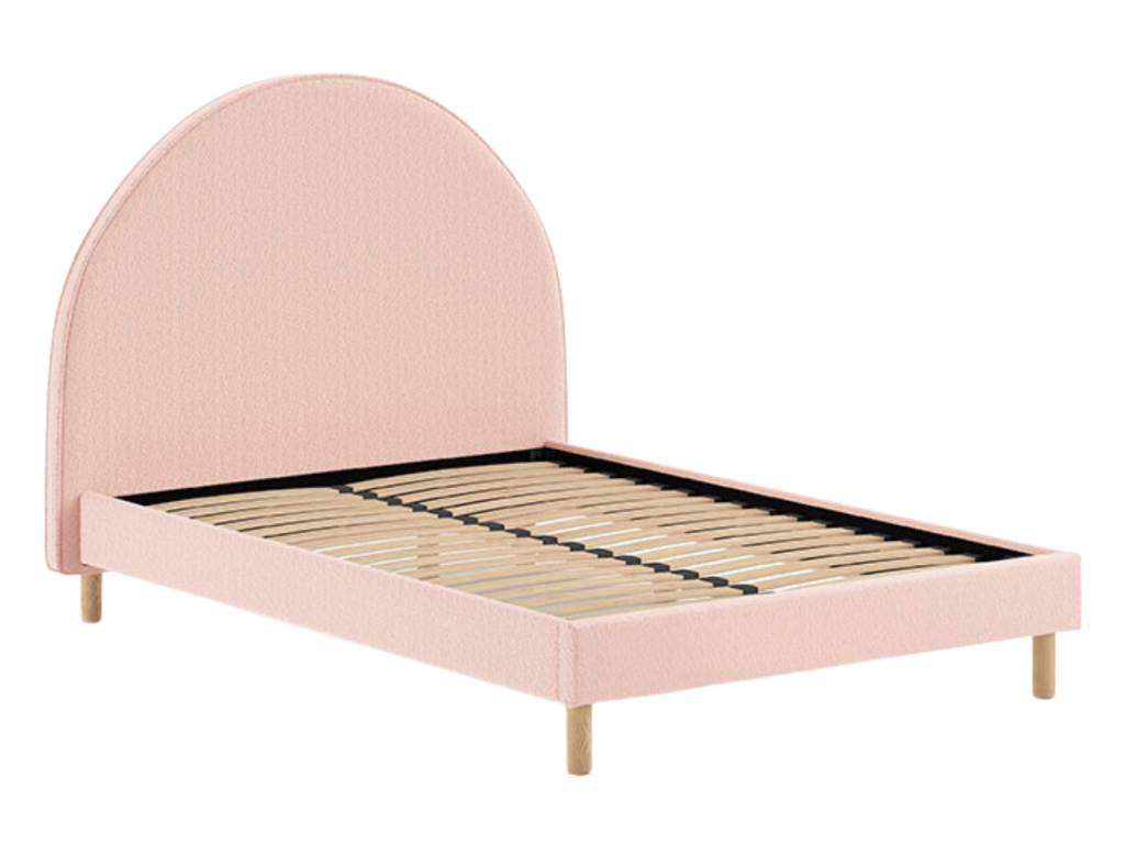 Růžová bouclé postel Vipack Moon 140 x 200 cm